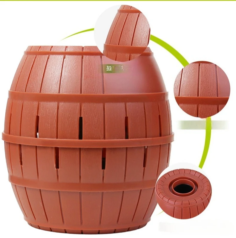 How to play: Before the game starts, you must first turn the into a person in a bucket, so that you can gradually push the sword. Then, the players take turns putting their swords into the bucket. The sword made the jump player lose the game. The next round, the must become barrels again. In order for the release mechanism to be in a different position, it must rotate with the