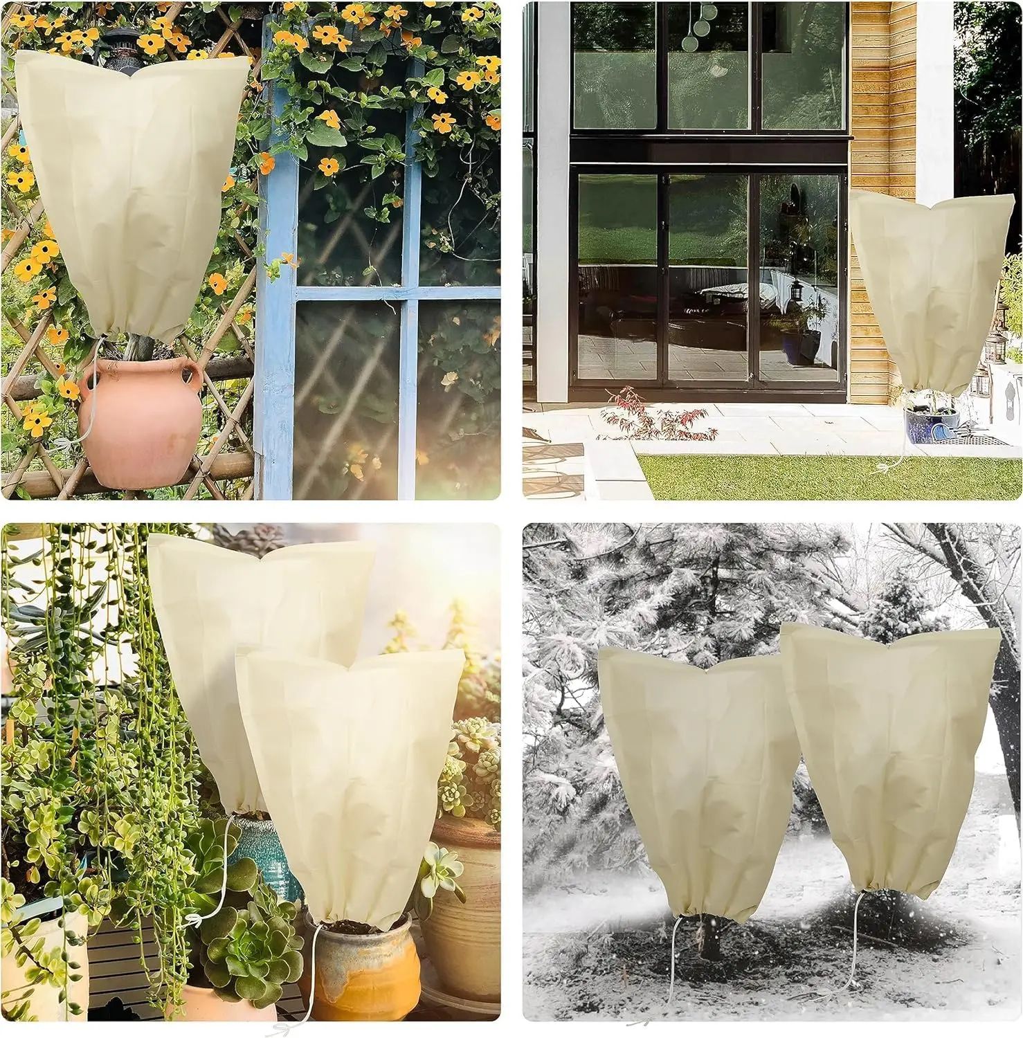 Plant Frost Cold Protection Bag with Zipper Drawstring Breathable Tear-Resistant Winter Plant Cover Non-woven Anti-Bird Cloth