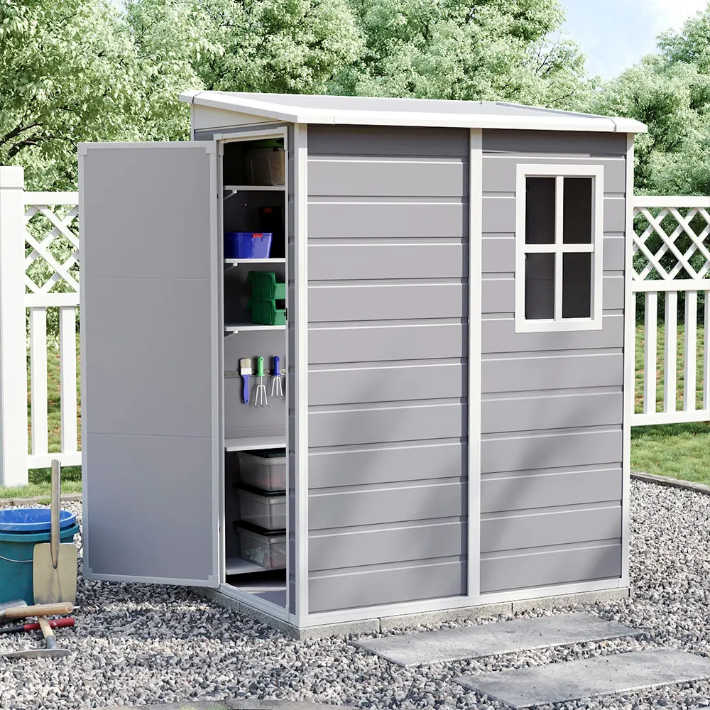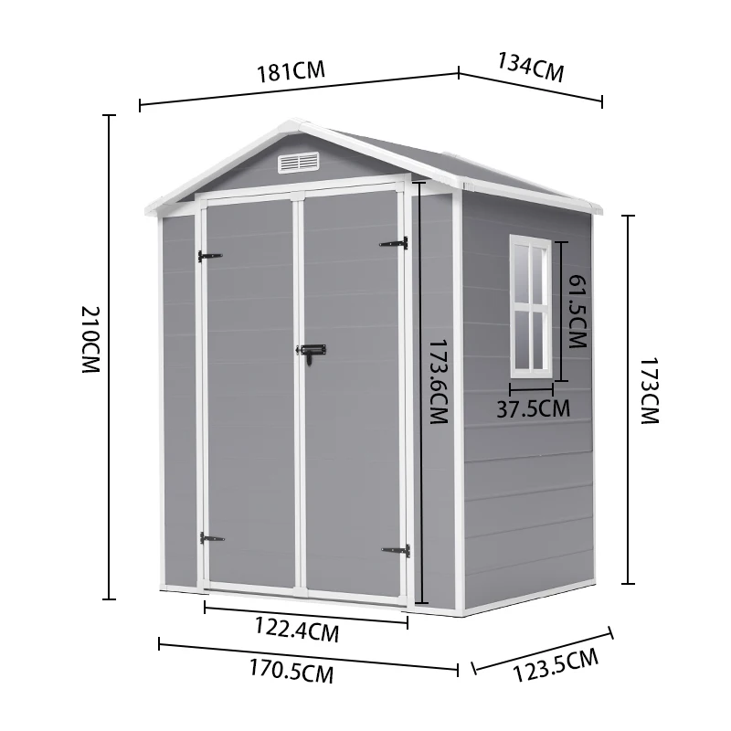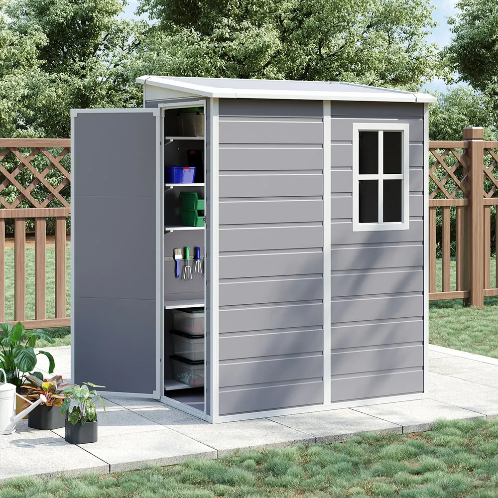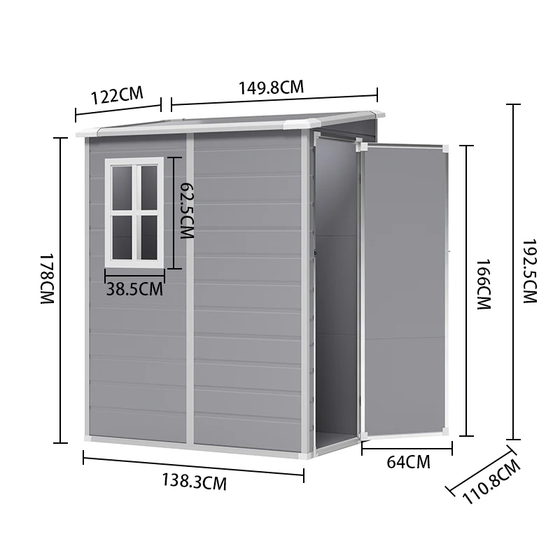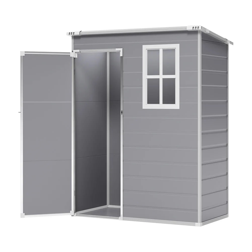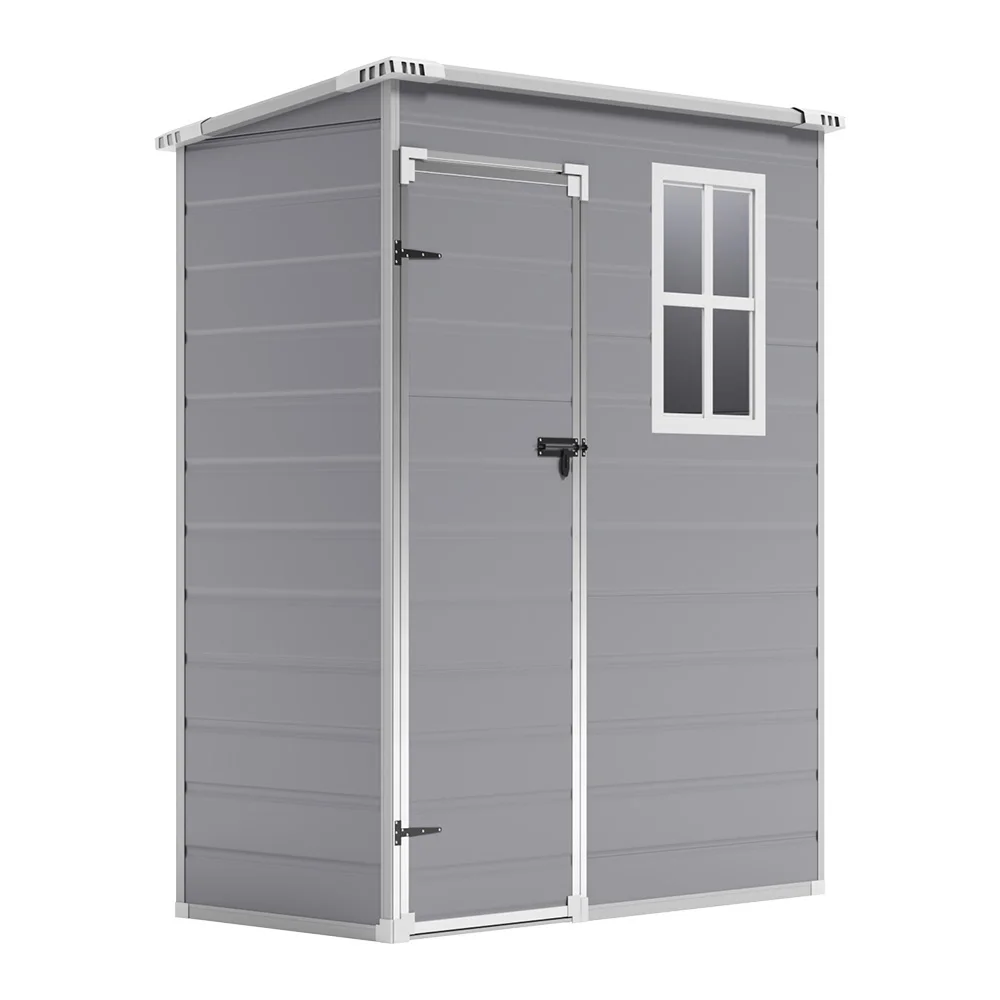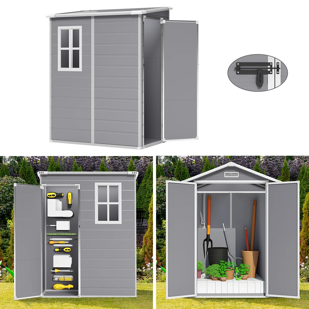 This shed is a modern take on outdoor storage shed, offering a reliable solution for keeping your outdoor space clutter-free. The large and tall interior space offers multiple storage options, accommodating various items from gardening tools to pool accessories. Built with sturdy plastic, this shed is resistant to rust, rot, and fading, making it suitable for year-round use. The compact size makes it easy to fit into tight corners or limited spaces, while the lockable door offers enhanced security for your belongings.