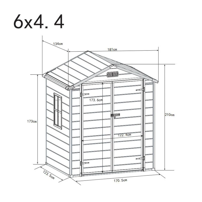 6×4.4ft:181cm W x 134m D x 210cm H