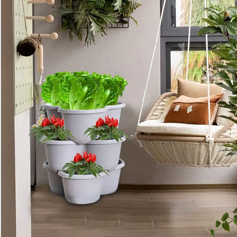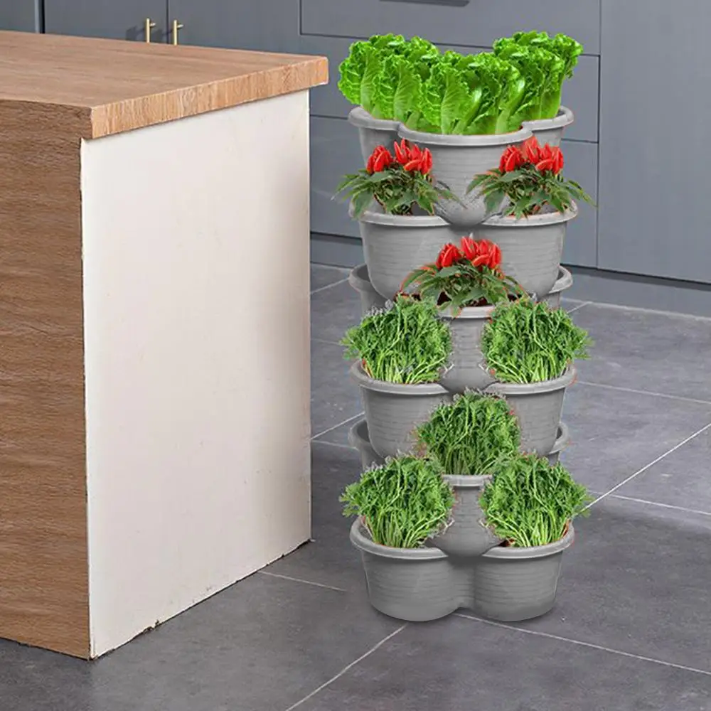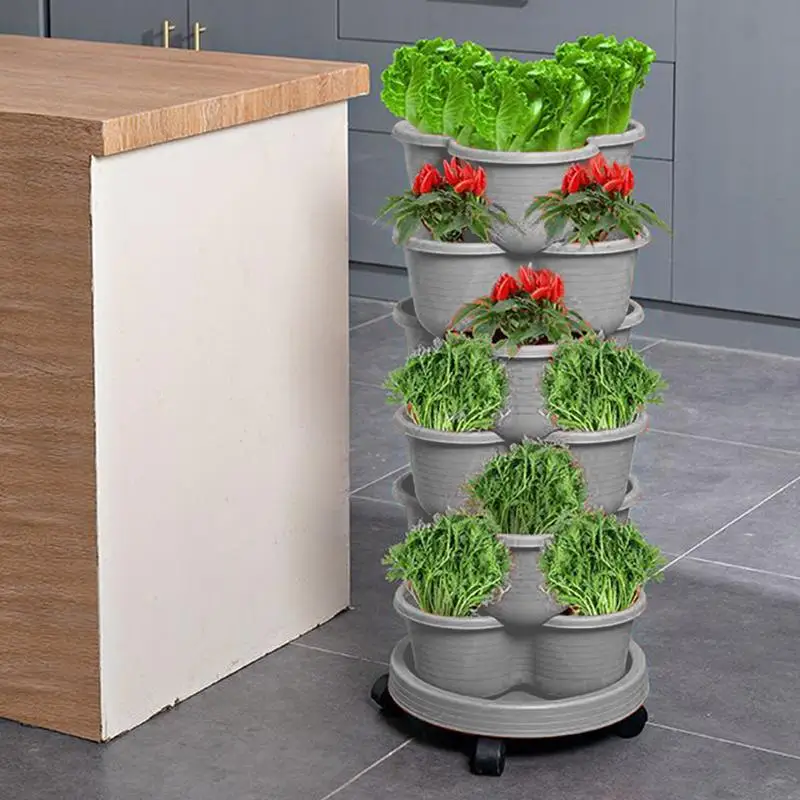 Plastic Stackable Vertical Flower Pot Multi-layer Garden Planter Tower with Movable Casters for Strawberry vegetable Frame Grow