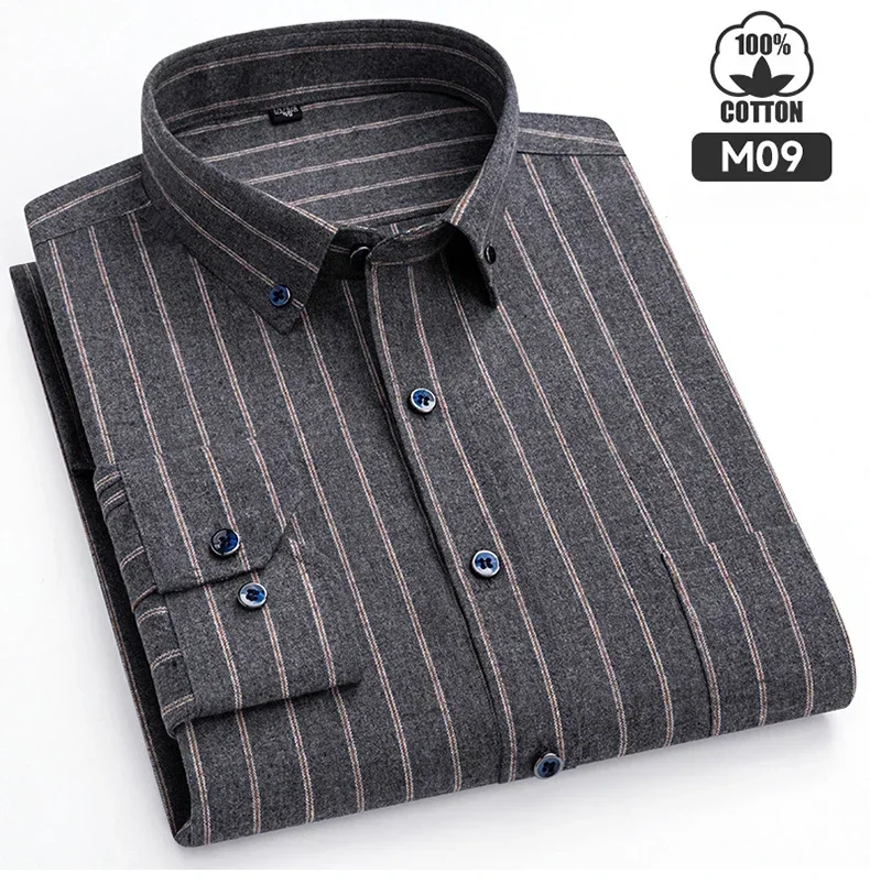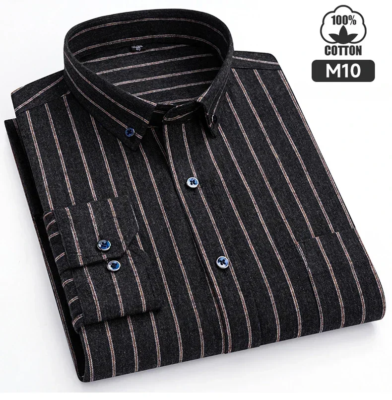 Plus Size 100% Long-sleeve Shirts for Men Casual Slim Fit Formal Plain Shirts Plaid Striped Elegants Designer Clothes