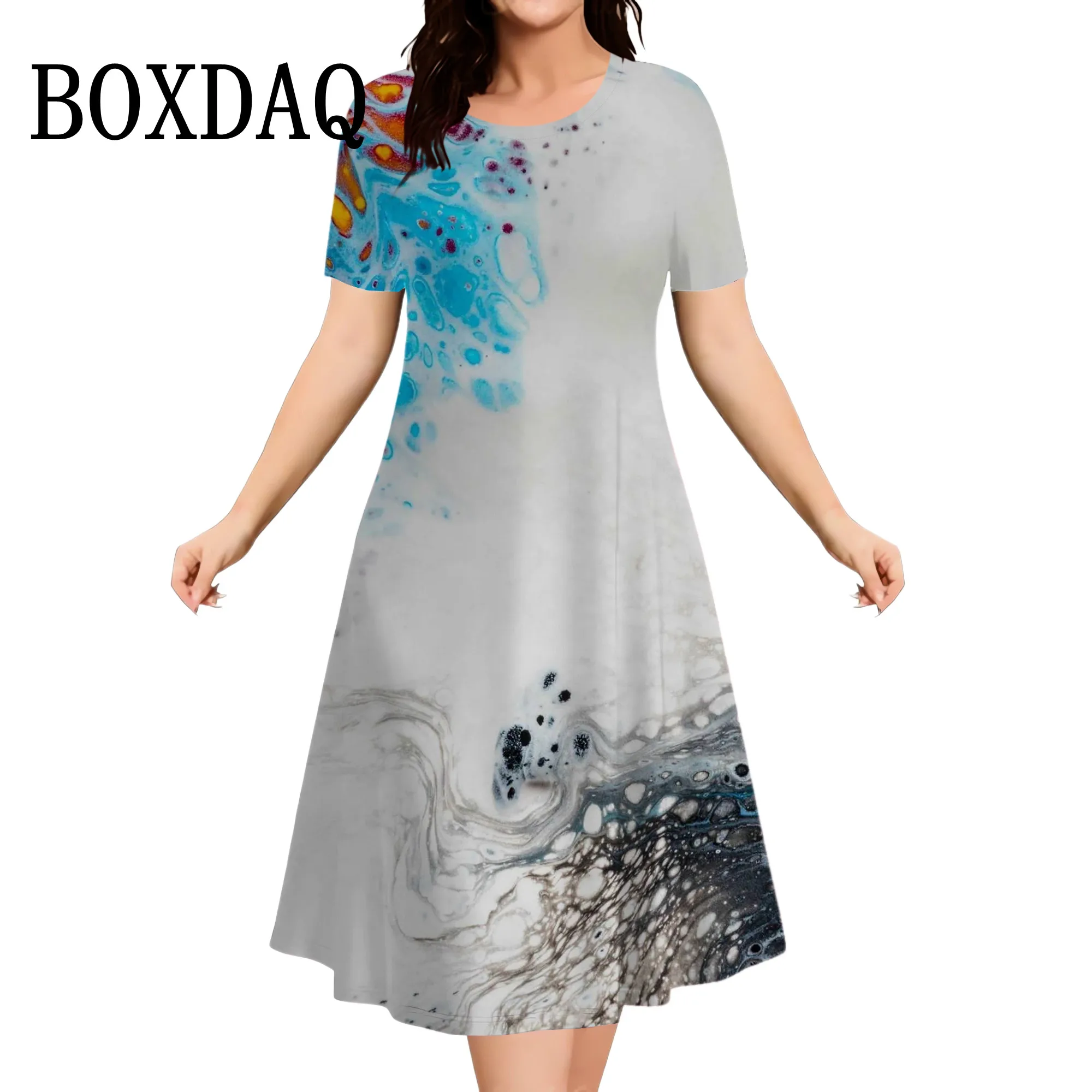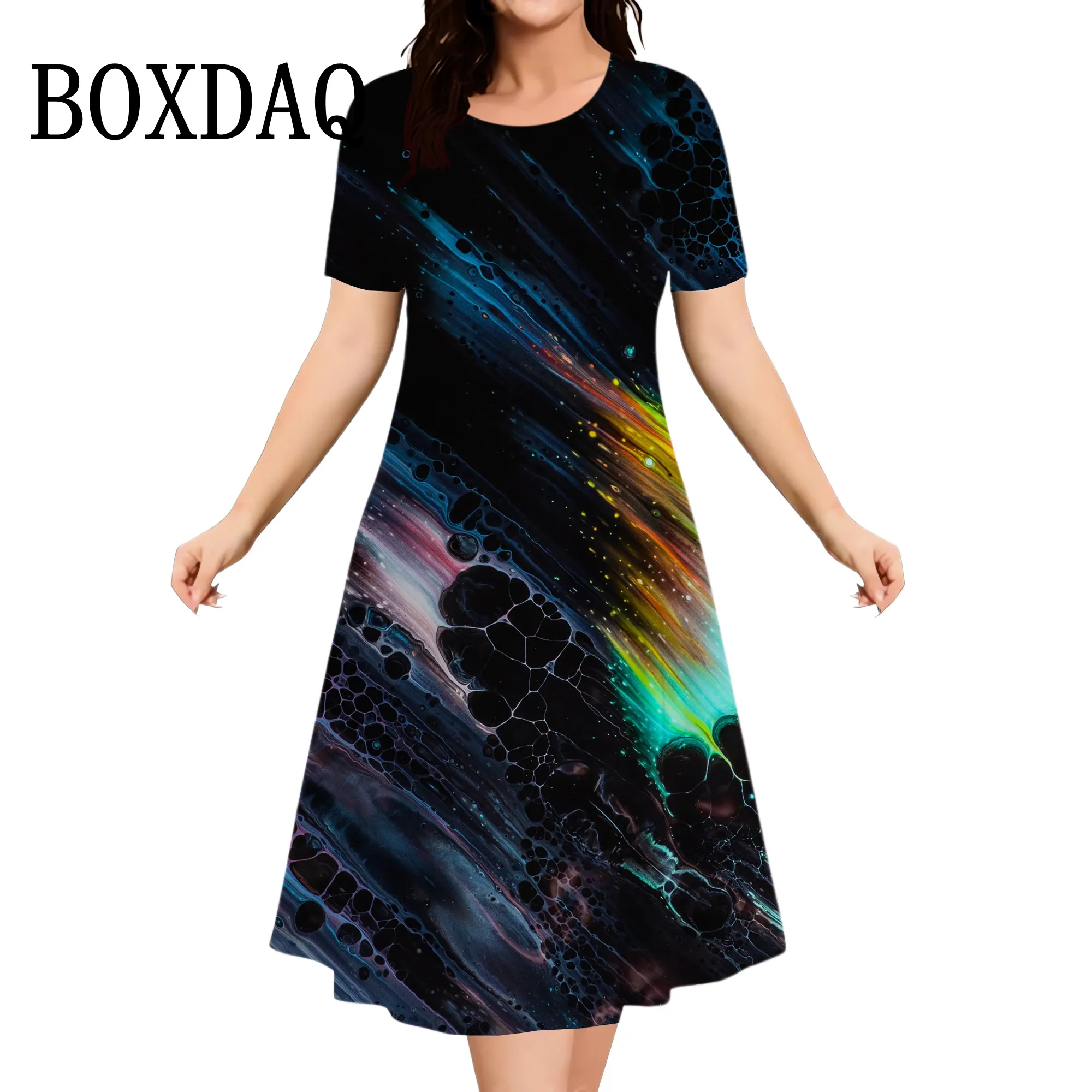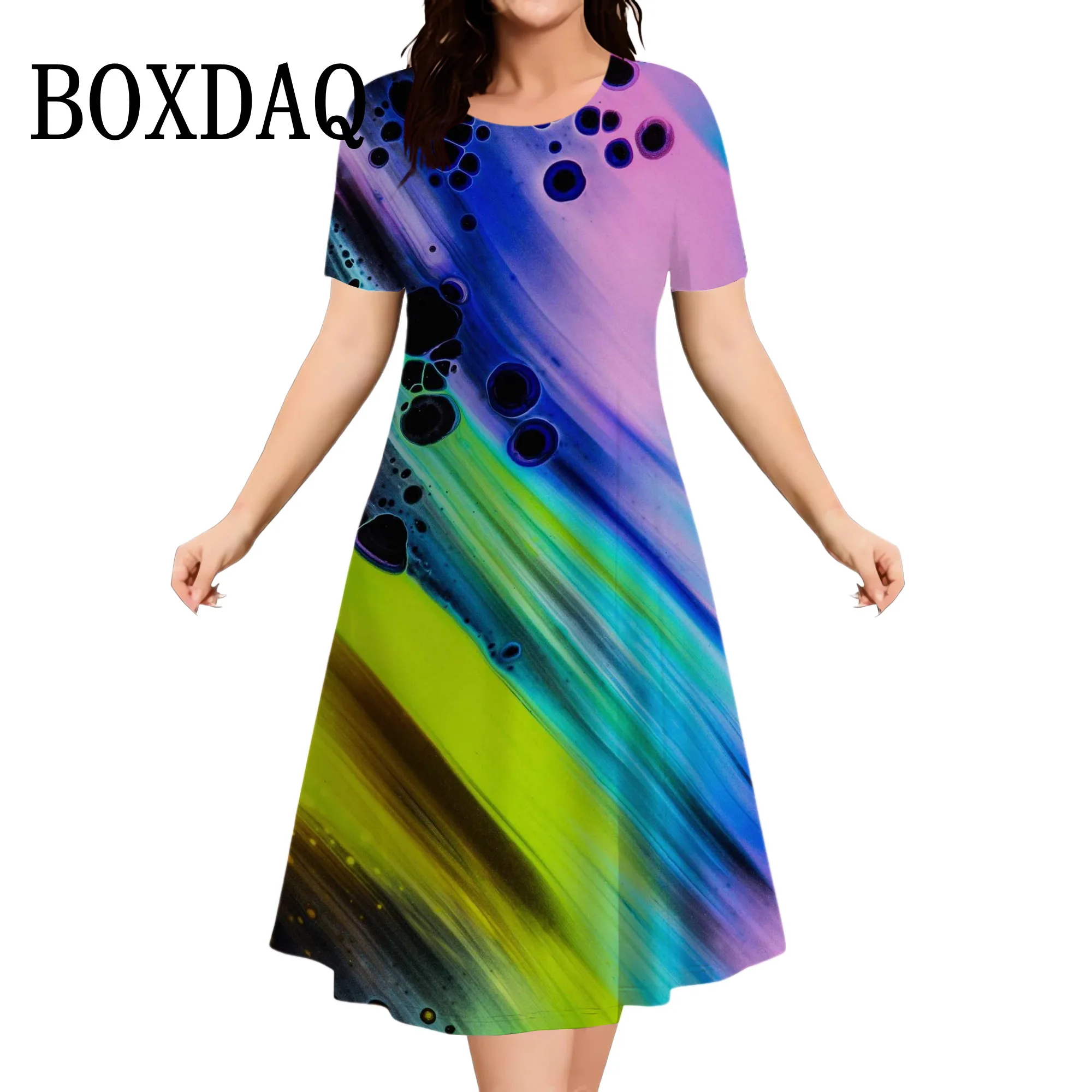Plus Size Women’s Dress Summer Tie Dye Printed Fashion Short Sleeve Round Neck Dress Fashion Party Casual Loose Women Dress 9XL