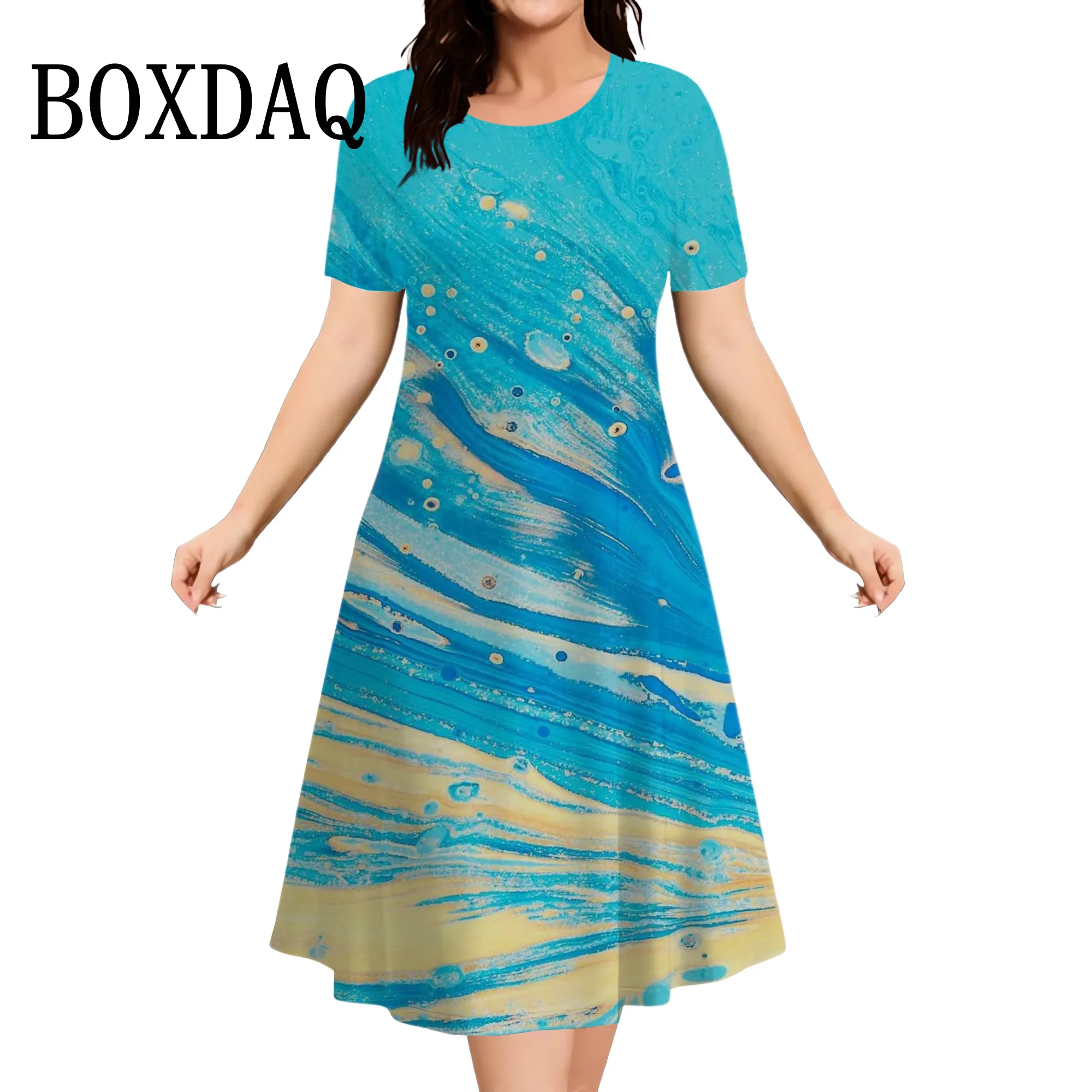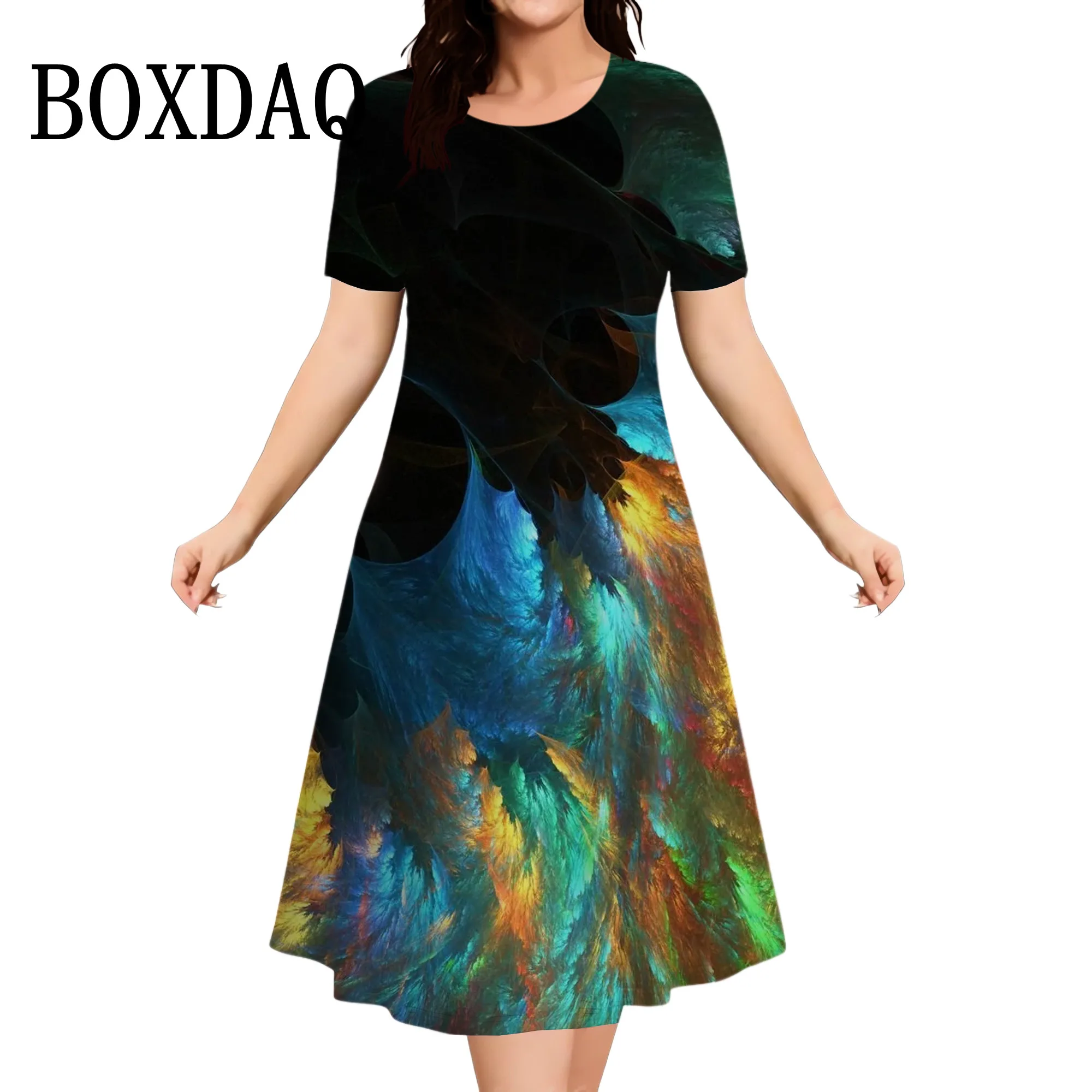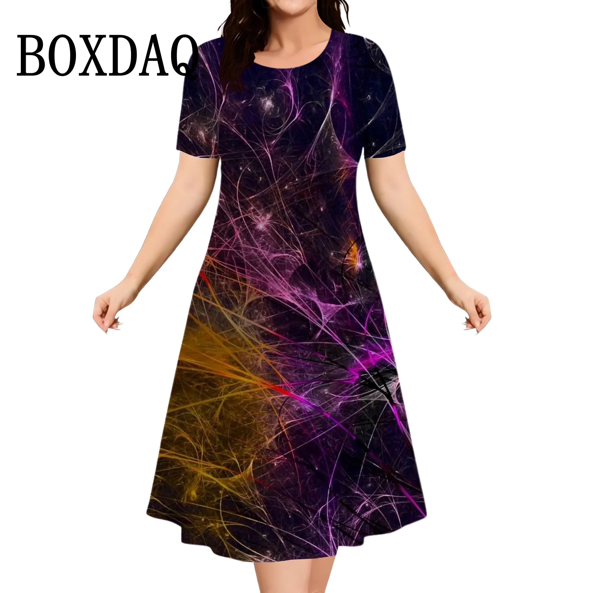 Plus Size Women’s Dress Summer Tie Dye Printed Fashion Short Sleeve Round Neck Dress Fashion Party Casual Loose Women Dress 9XL