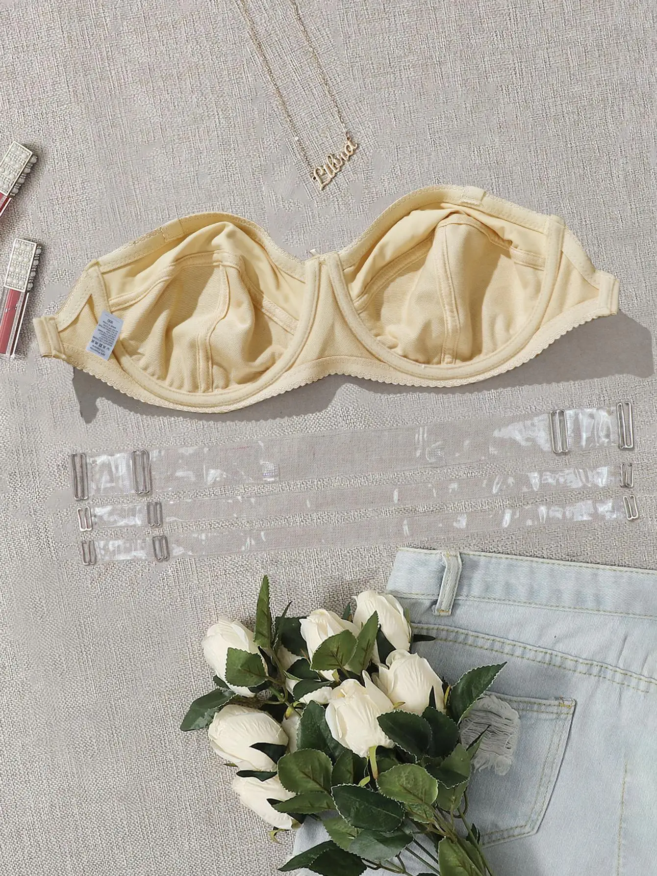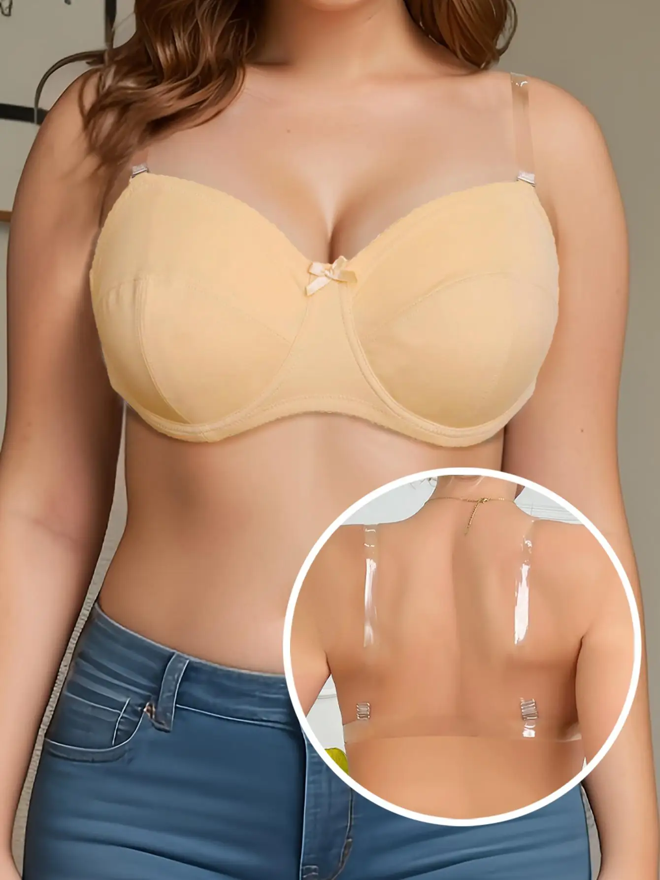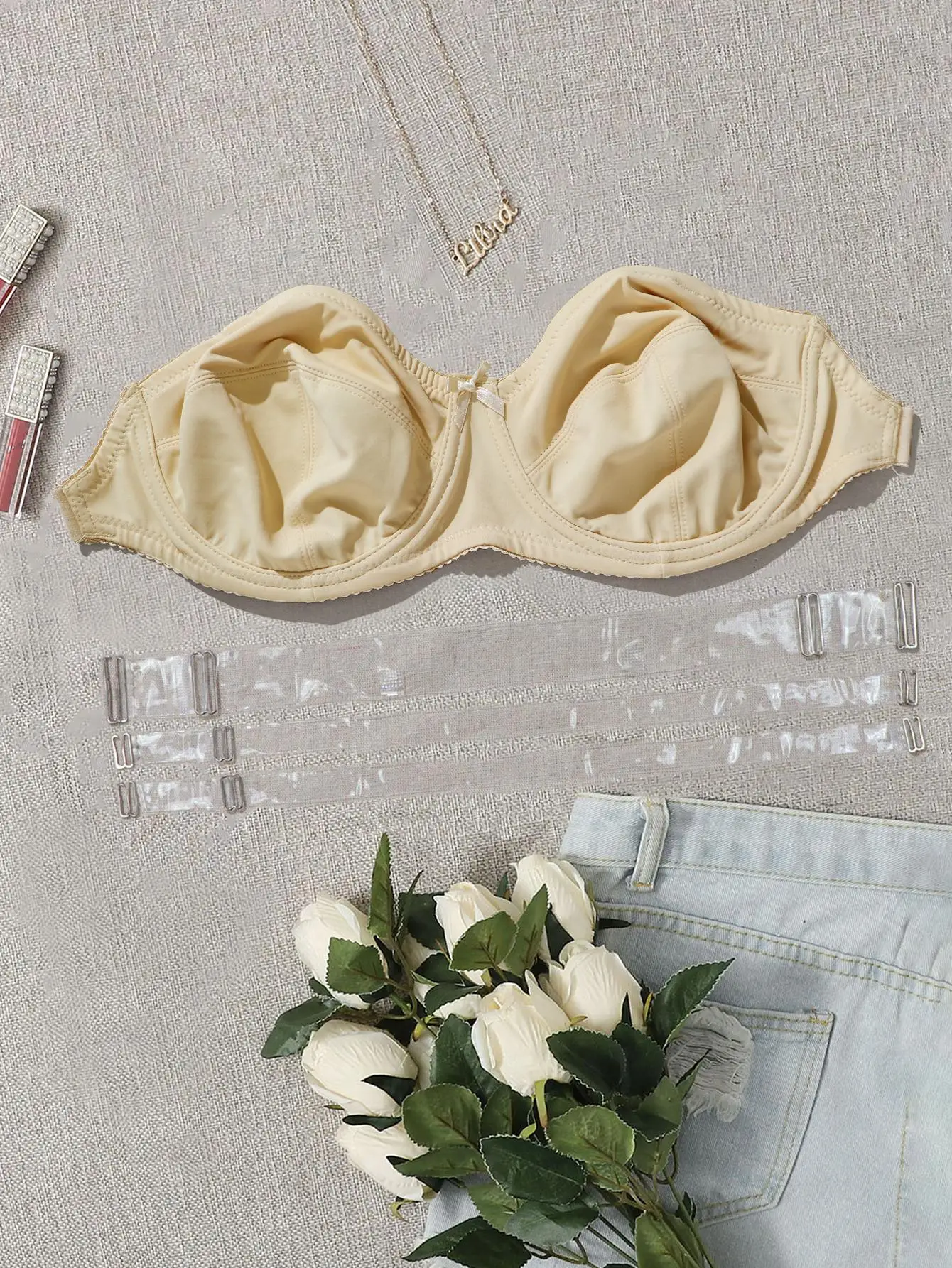 PLUSGALPRET Plain Simple Strapless Unlined Bra with Wire Backless Invisible Bra Plus Size 38C 38D 40C 40D 42C 42D 44C 44D-044