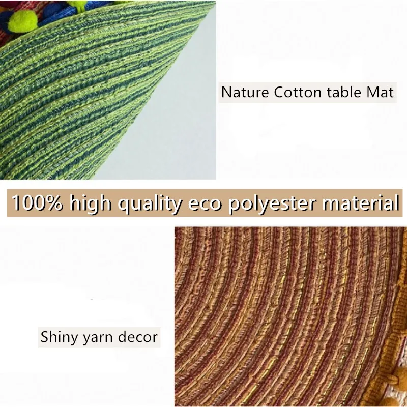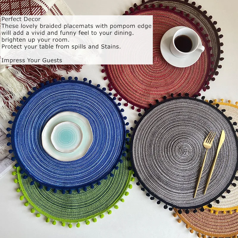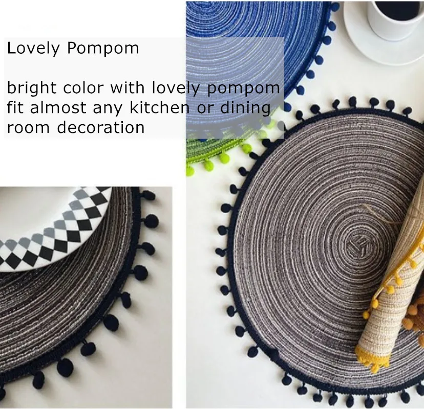 Pompom Placemats and Coaster Set Round Trivet for Hot Dish Vintage Placemat Jute Table Mats Boho Coasters Bohemia Placemat Pads