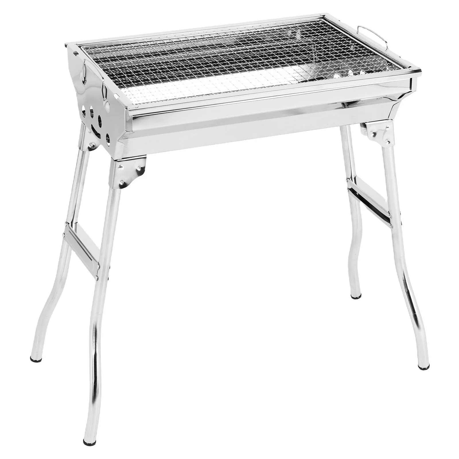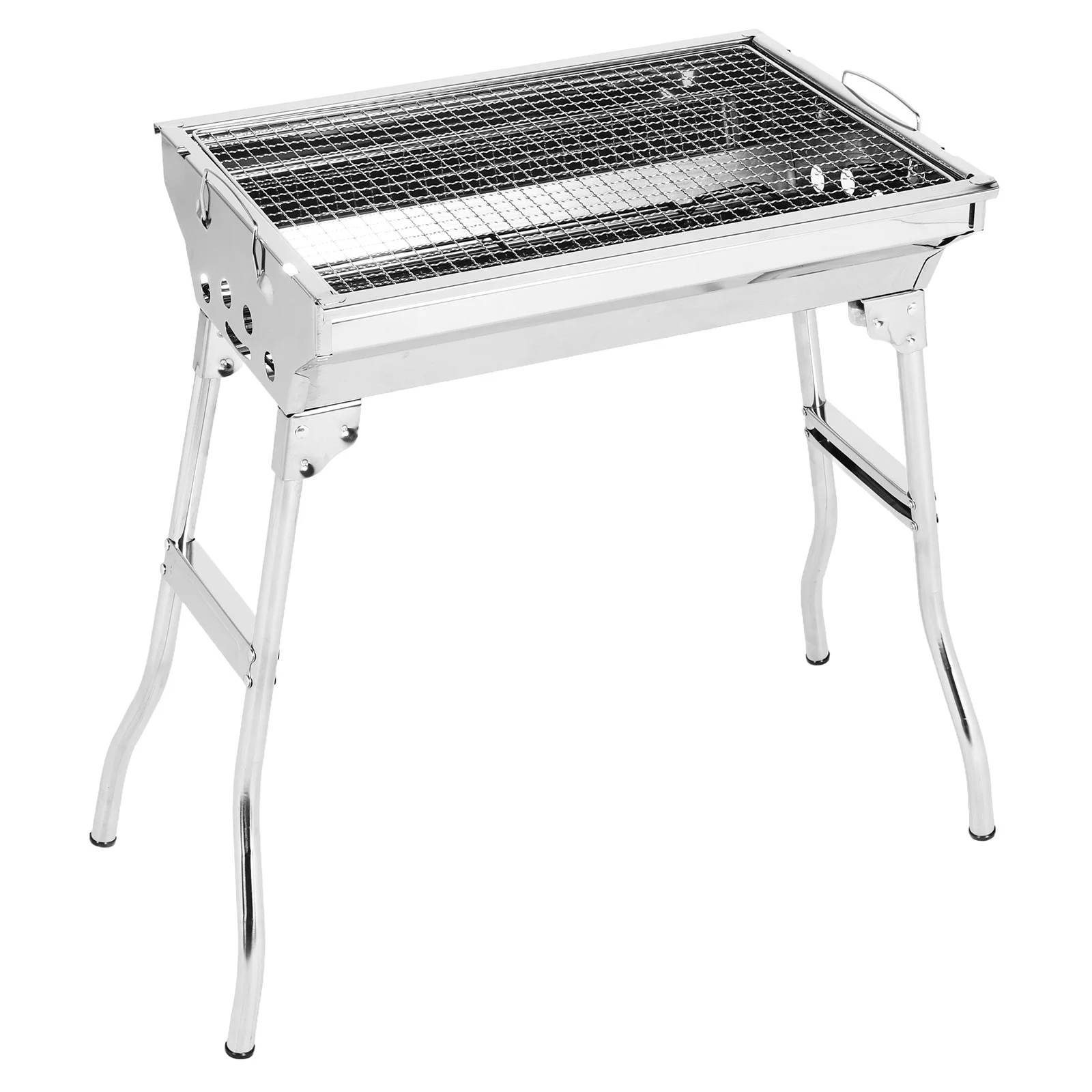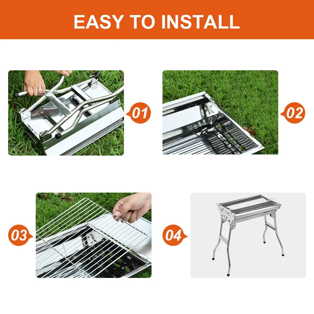 Portable Barbecue Grill Stainless Steel Camping Stove with Stand with Storage Basket Foldable Charcoal Grill BBQ Accessories