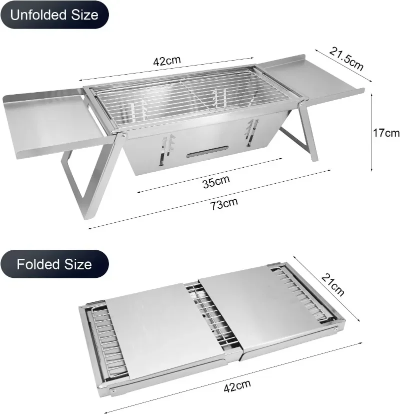Portable Charcoal Grill Stainless Steels BBQ Grill Collapsible Small Barbecue Grill for Outdoor Cooking Barbecue Camping Picnic