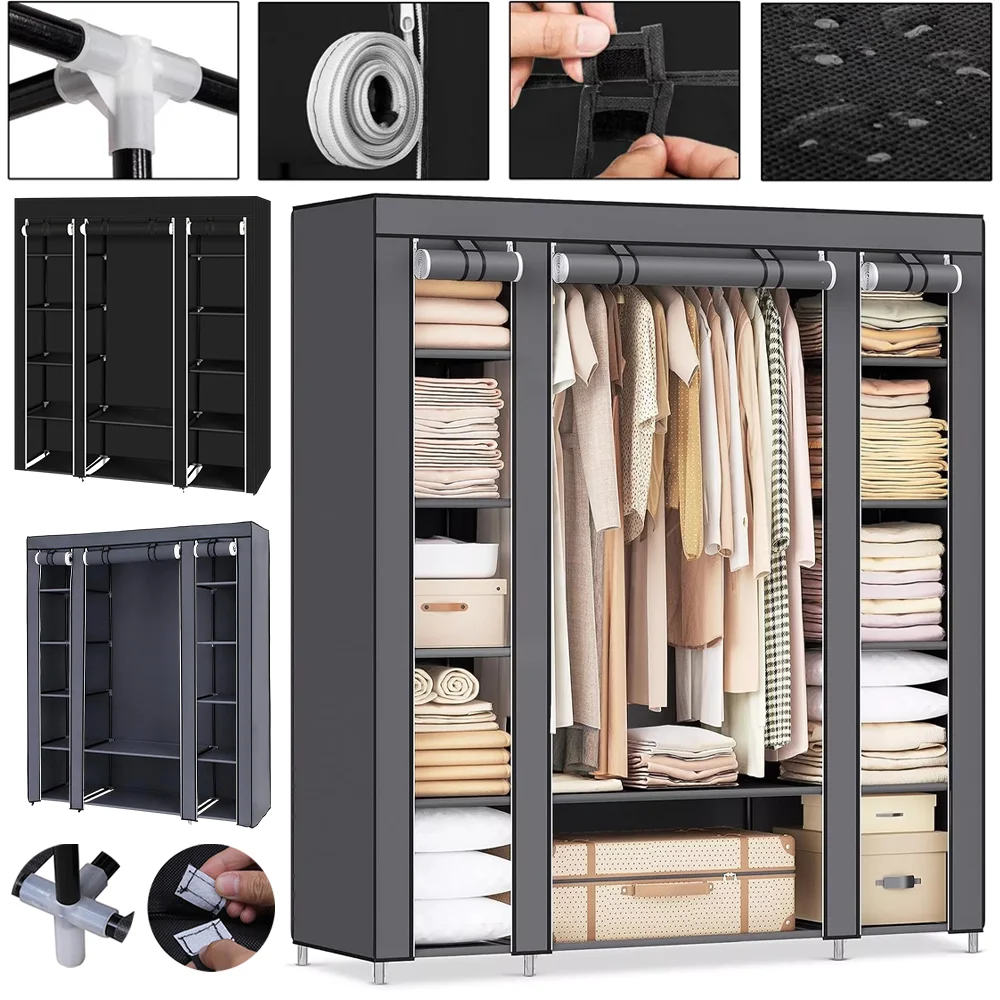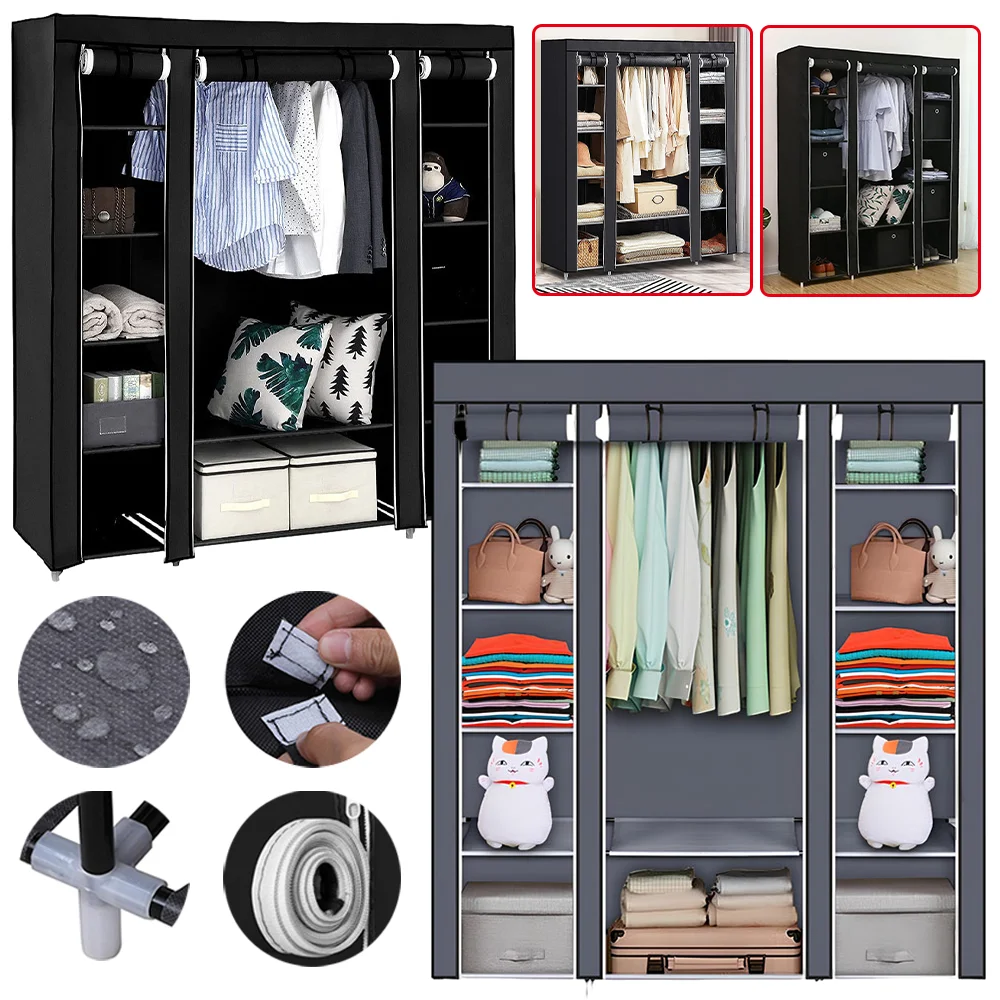 Portable Clothes Closet Wardrobe Storage Organizer with Non-Woven Fabric Dustproof Wardrobe Simple Storage Cabinet Home School