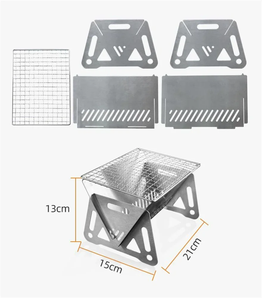 Portable Folding Charcoal BBQ Grill Stainless Steel Mini Barbecue Oven Tabletop Outdoor BBQ Collapsible Grill For Camping Picnic