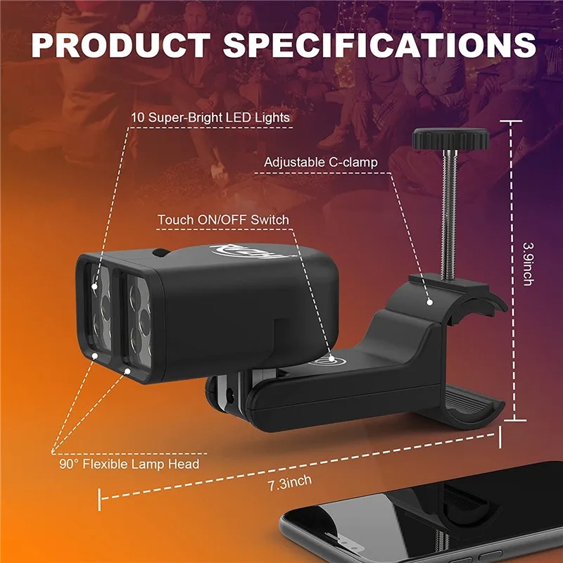 The grill light can be rotated 90° left and right to provide an ultra-bright, glare-free