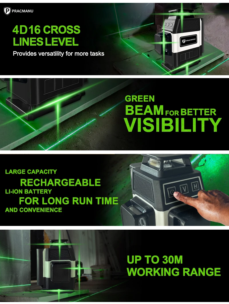 • 16 Lines for Accurate Measurement :The laser level has 16 lines, providing accurate measurements for both horizontal and vertical surfaces.