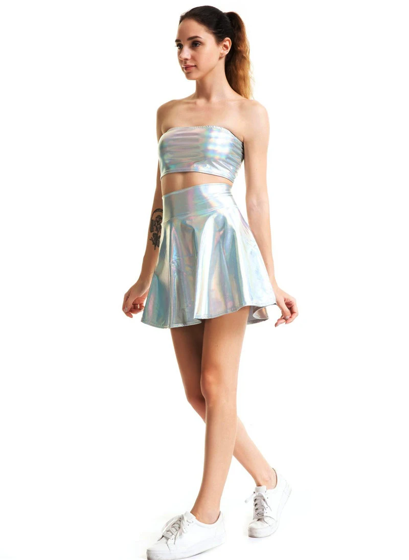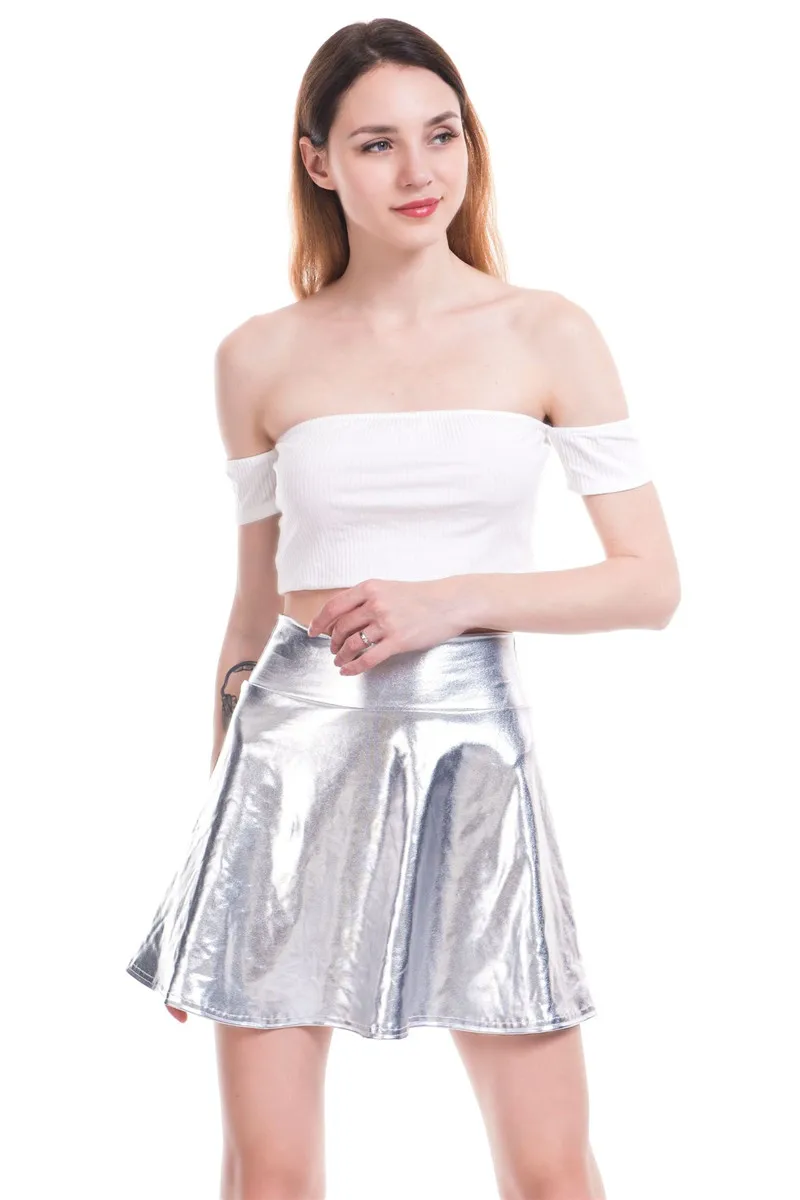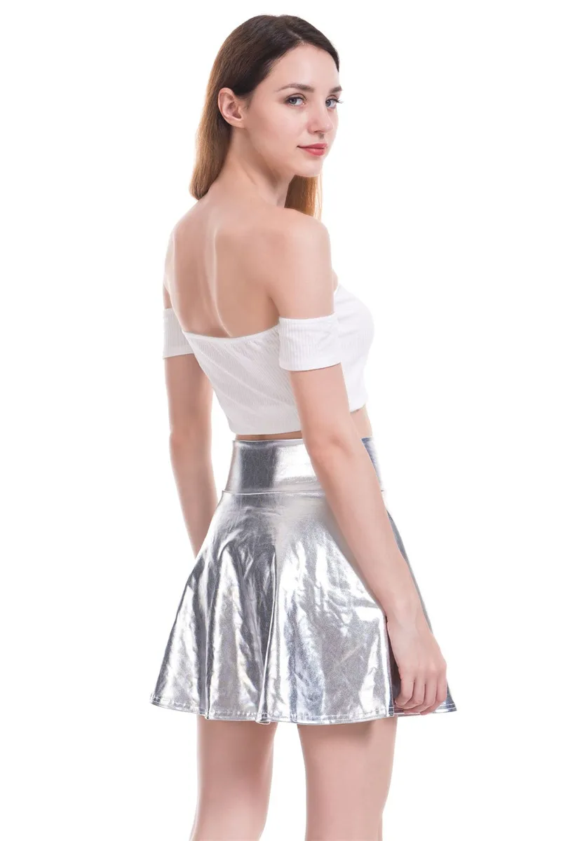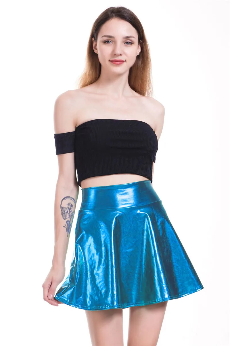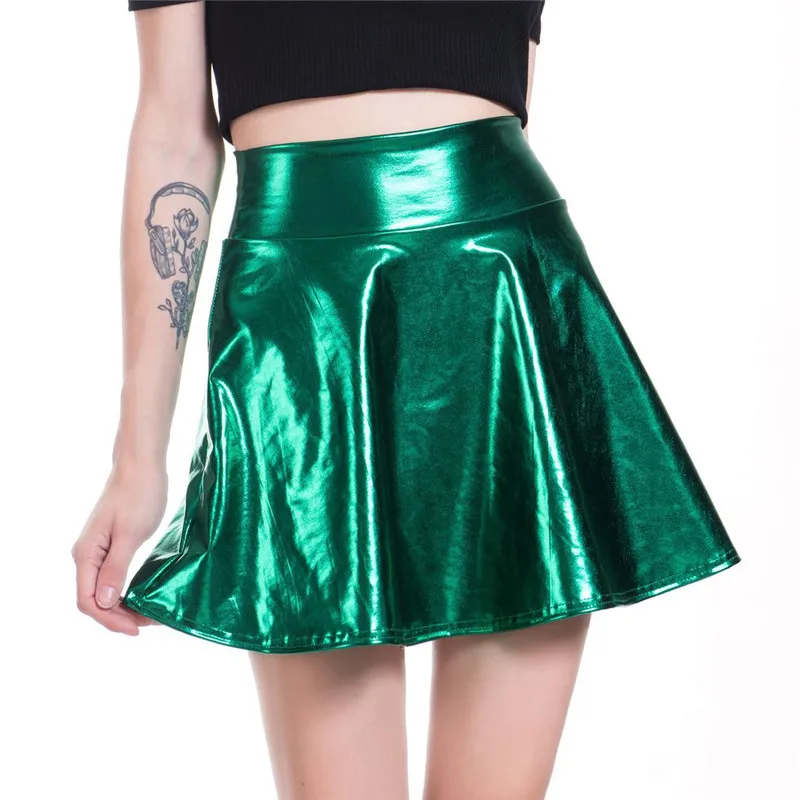 PU Shiny Metallic Color Sexy Bodycon Mini Skirts Women High Waist A-line Flare Skirt New Fashion Summer Streetwear Short Skirts