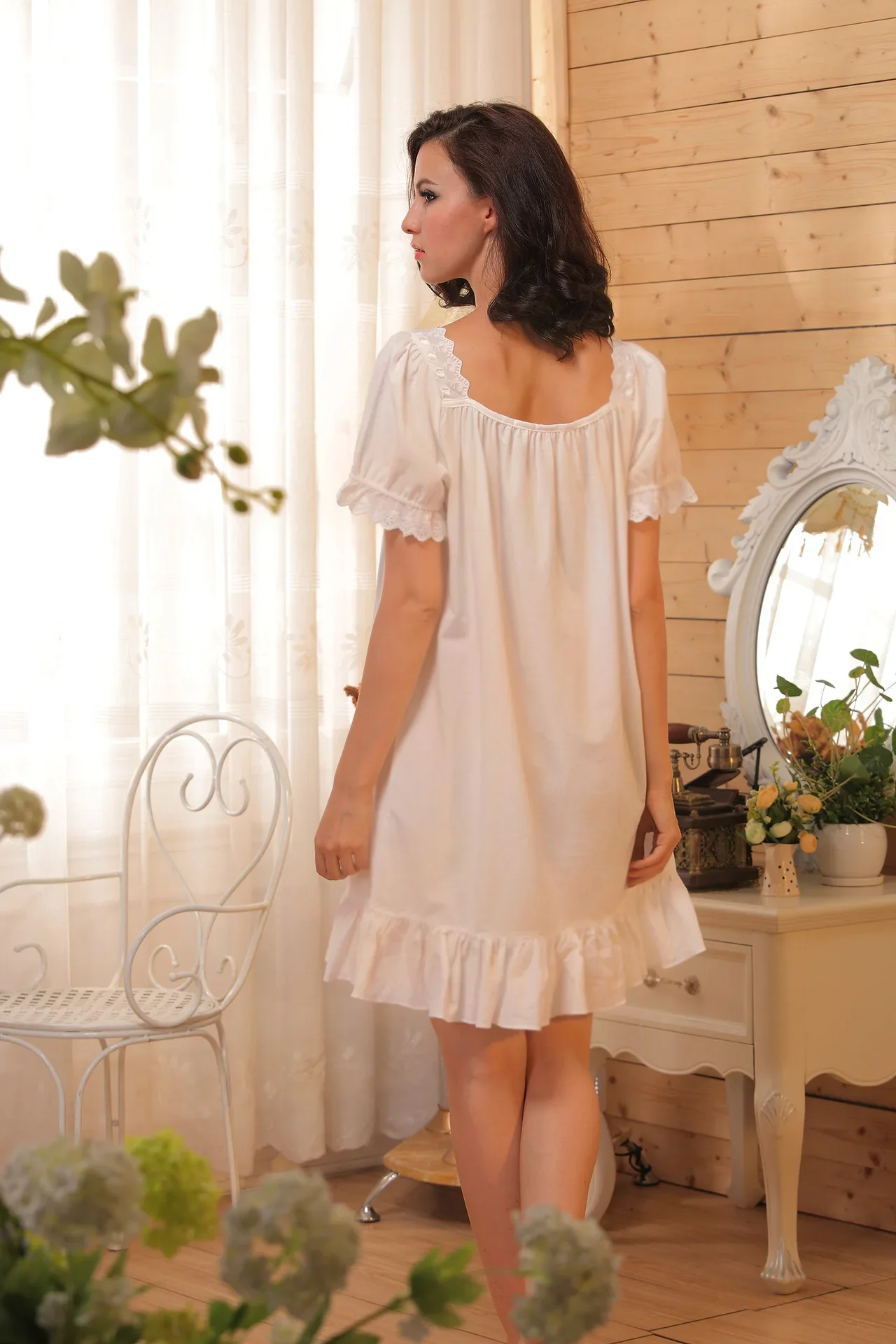 | Model Number | Women Cotton White Short Sleeve Nightdress |