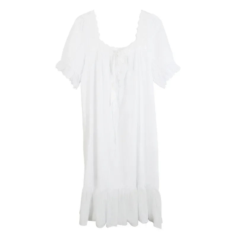 Pure Cotton Victorian Night Dress Women White Short Sleeve Sexy Lace Ruffle Nighty Peignoir Vintage Nightgown Princess Sleepwear
