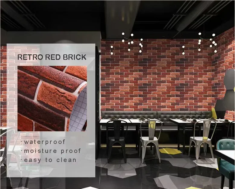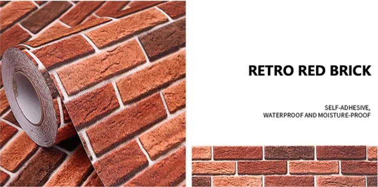 PVC 45cm waterproof wallpaper modern home decoration retro brick pattern self-adhesive wallpaper DIY background wall sticker