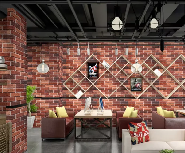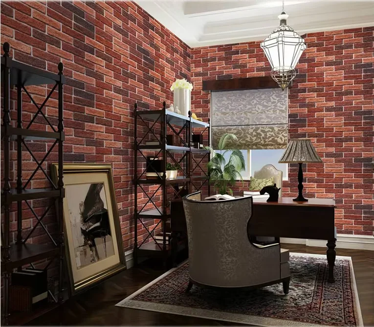 This wallpaper features a classic brick pattern design, adding a touch of rustic style to any modern room decoration.