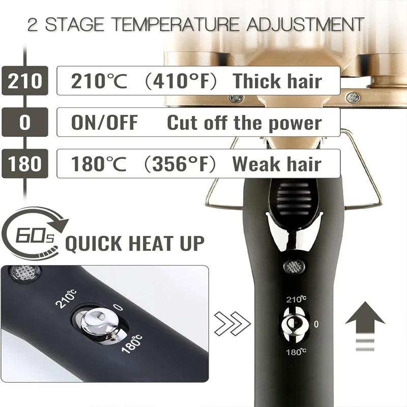 Temperature control technology,1 switch, temperature 180℃, 210℃2 modes can be adjusted, safer to use