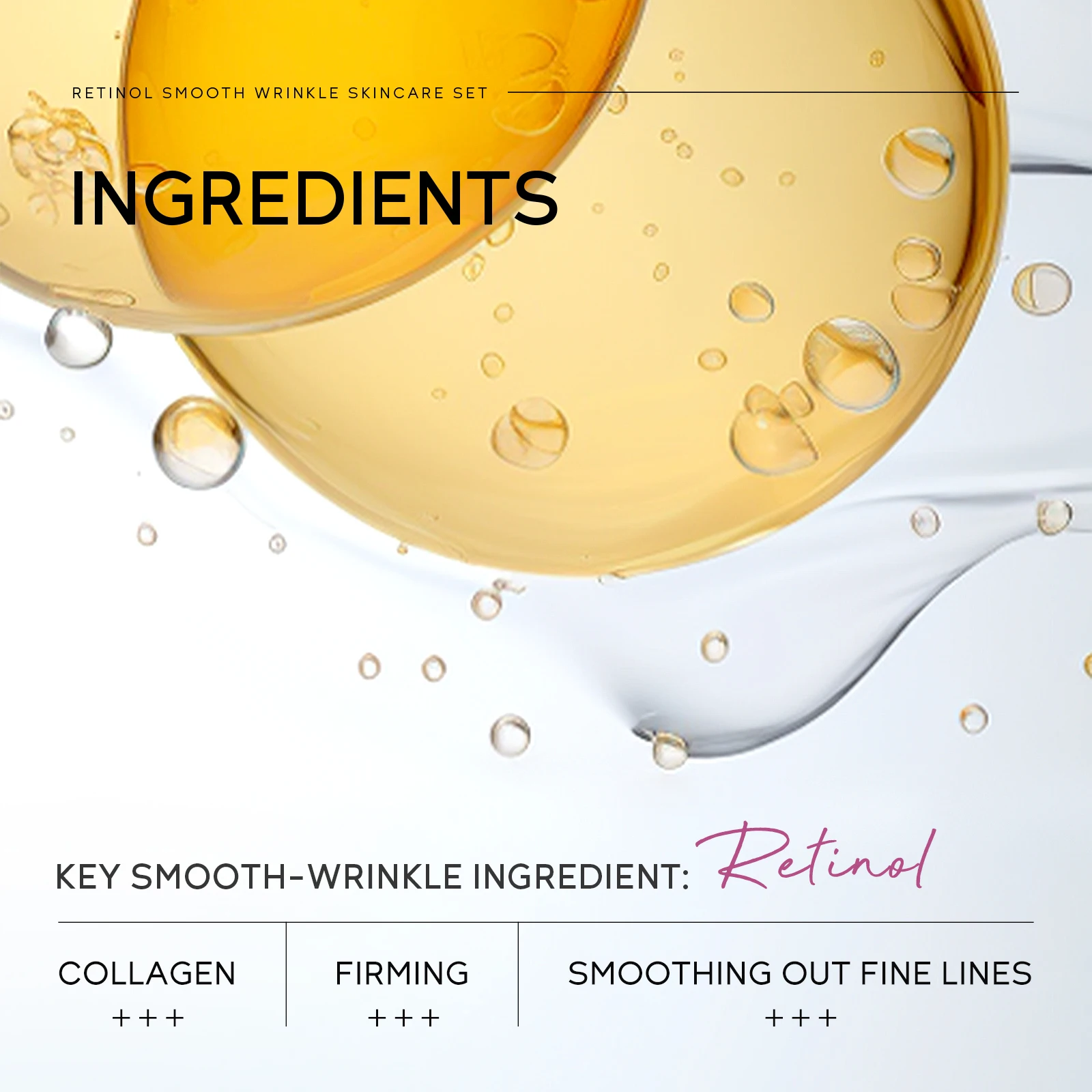 QUIYUM Retinol Smooth Wrinkle Skincare Set · For All Skin Type· Smooth wrinkles & Fine Lines Improve Skin Elasticity & Radiance Contain Niacinamide Hyaluronic Acid(Serum+Eye Cream+Essence Cream)