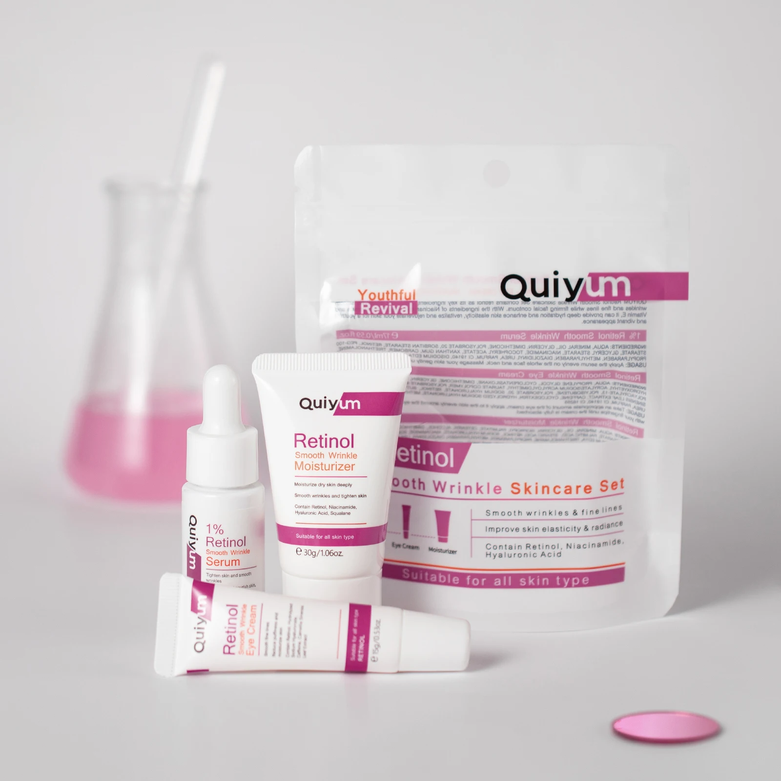 1 * QUIYUM Retinol Smooth Wrinkle Skincare Set(Serum 17ml – Eye Cream 15g- Moisturizer 30g)