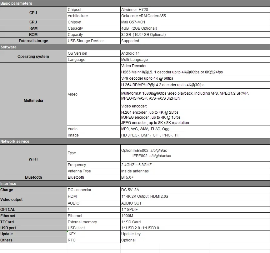 CPU:Octa core ARM Cortex-A55 Â Â Â 8K4K Video decoding