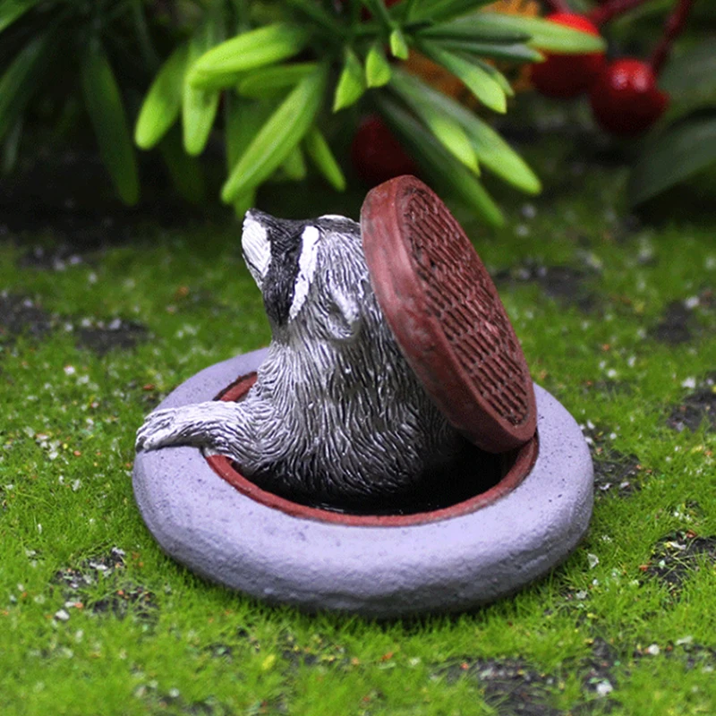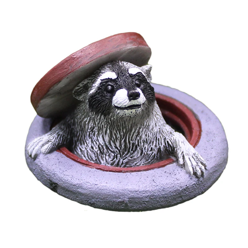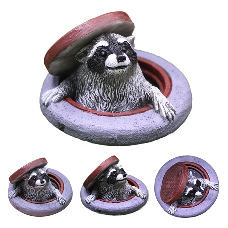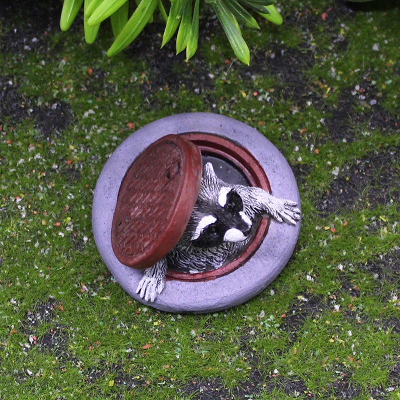 Raccoon Ornament Under Manhole Cover Garden Microlandscape Simulation Animal Resin Decor for Indoor/Outdoor Garden, Lawn, Tabletop Decor