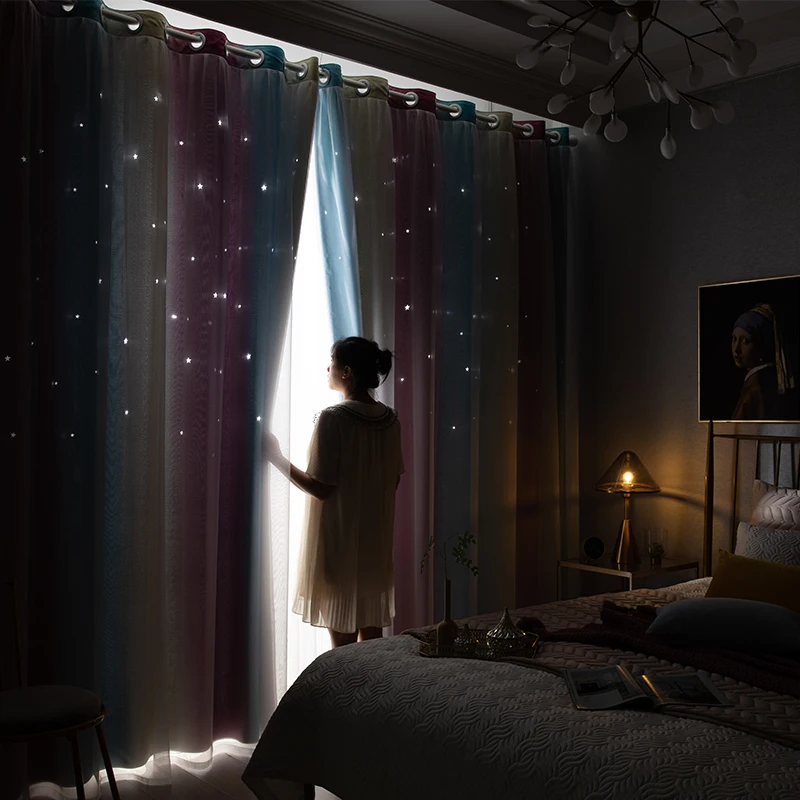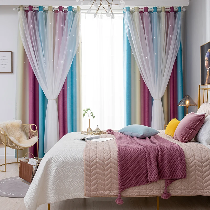 Rainbow Hollow-Out Star Blackout Curtains for Girl Kid Nursery Bedroom and Living Room Double Layer Window Cute Grommet Curtains
