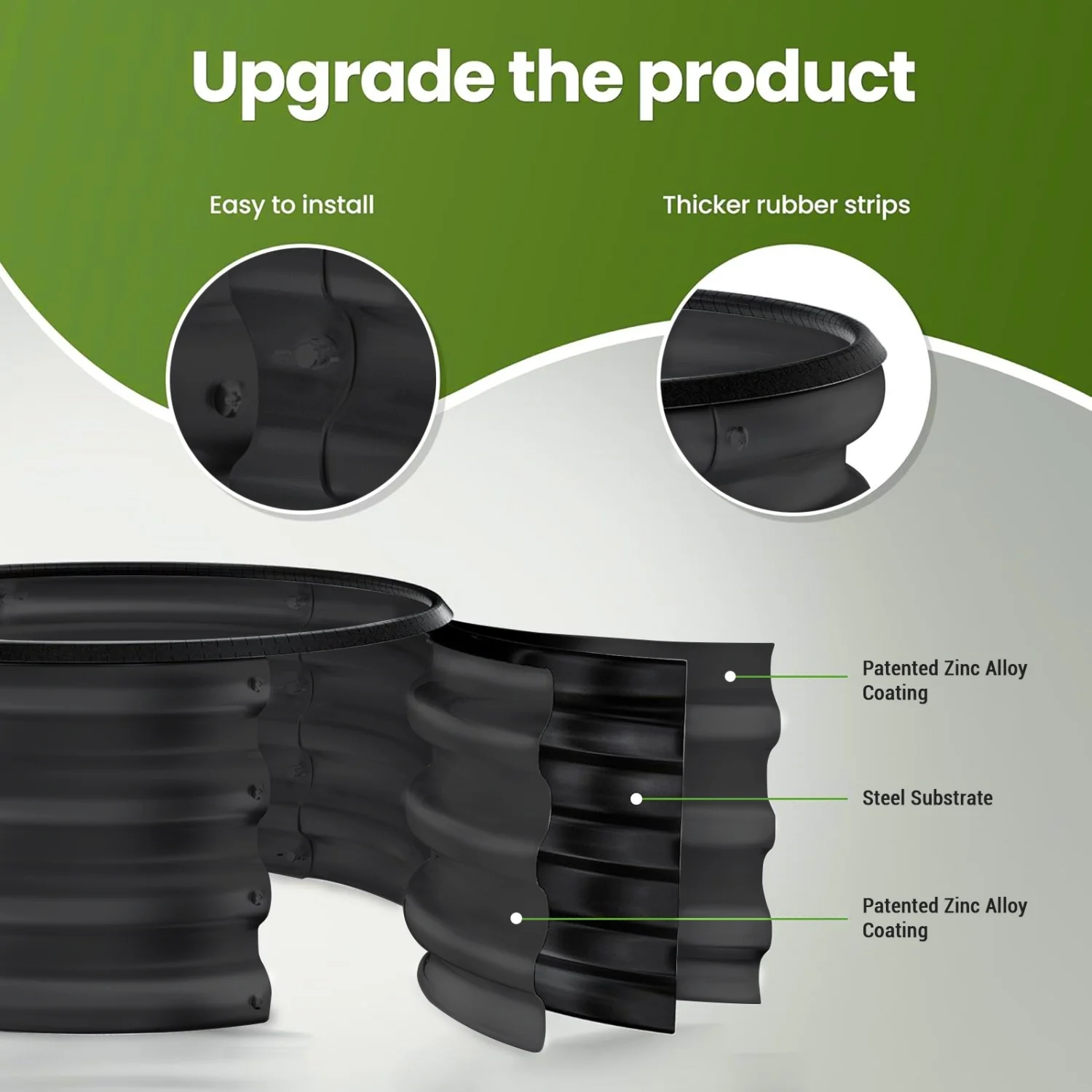 【Durable Galvanised Steel Construction】These raised beds are forged from high-quality galvanised steel, thick (0.6mm thickness), providing long-lasting strength and protection against rust, rot, and warping. Additionally, the surface has been designed with groove with intention of reinforcing toughness, which makes whole flower bed more durable. they offer a practical and cost-effective alternative to wooden beds.