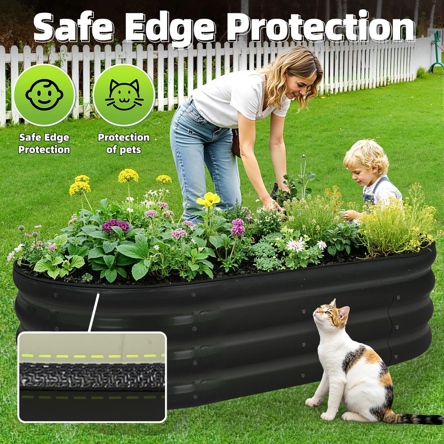 【Ample Planting Space】Measuring the dimension of 195cm L x 28cm W x 60cm H, the elevated planter box has sufficient space to plant varied green plants such as vegetable, succulent or kinds of flowers. Meanwhile, the edge has been wrapped with rubber to avoid getting hurt.