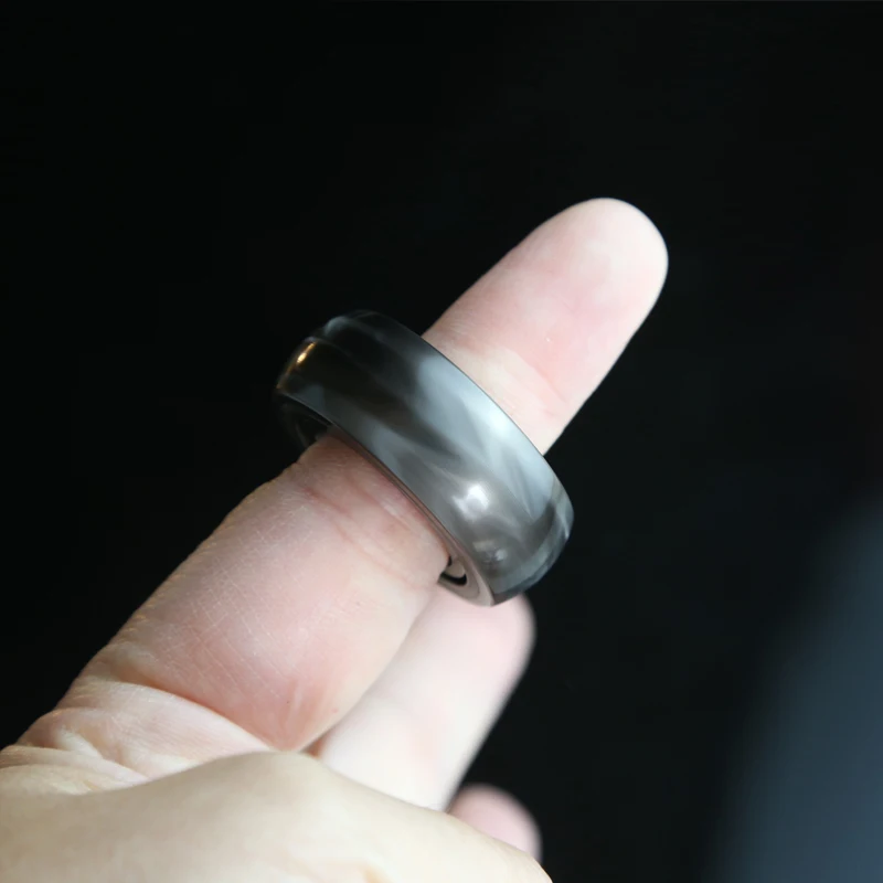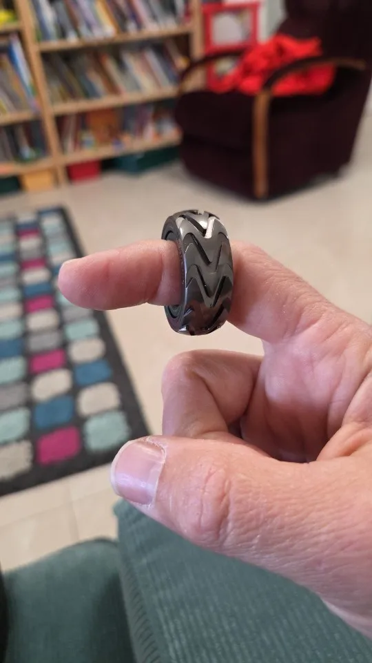 Place the fidget ring on your finger and slide it with your thumb. During this process you will feel the force feedback and will make a “ta-ta-da” sound. You can do it with one hand. It’s really fun.