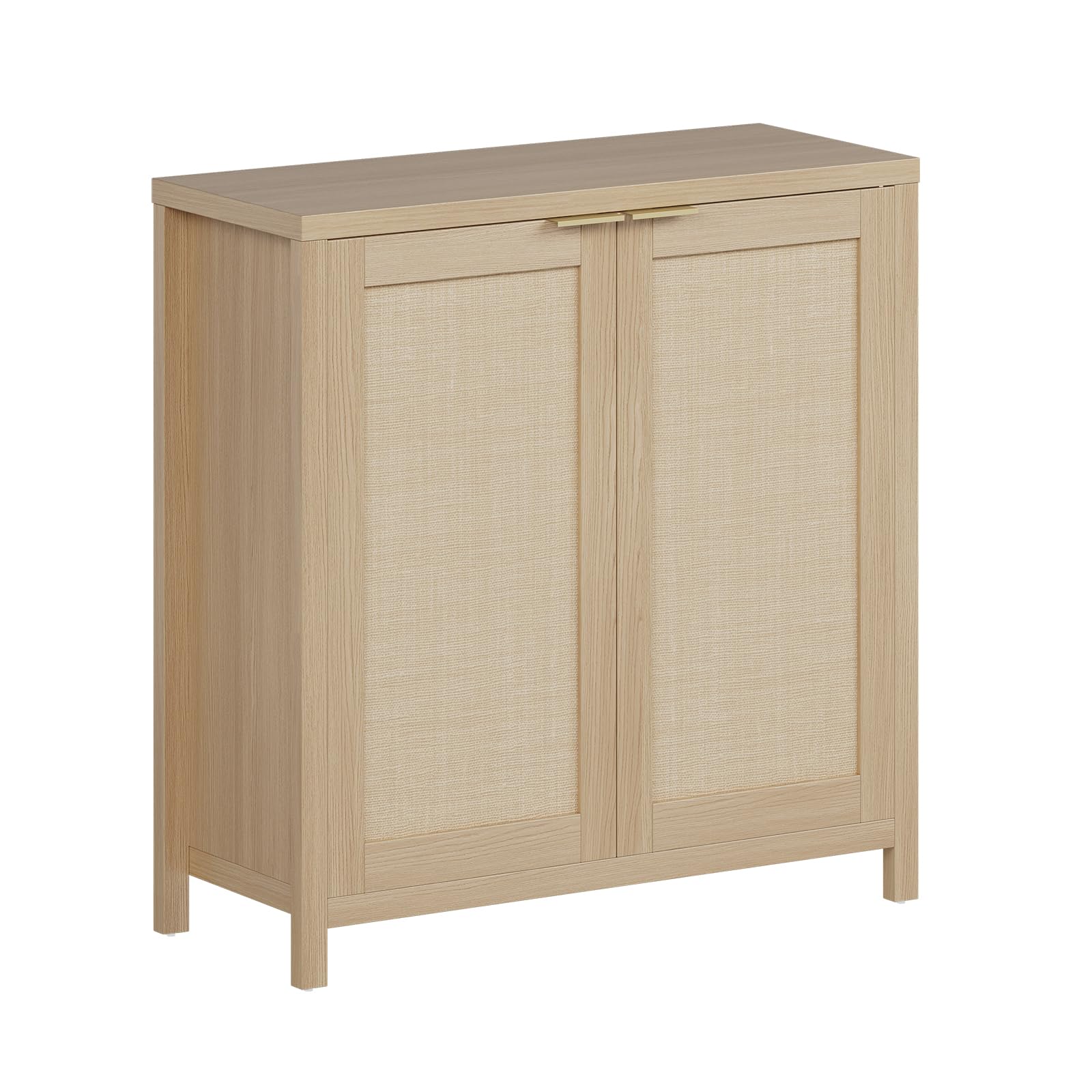 • 3. Natural Material & Exquisite Craftsmanship With a Natural Wood Accent Cabinet and rattan door design, plus hidden golden handles and non-slip wooden legs, it ensures structural stability and durability, while creating a natural and elegant home atmosphere with rattan texture and wood grain.