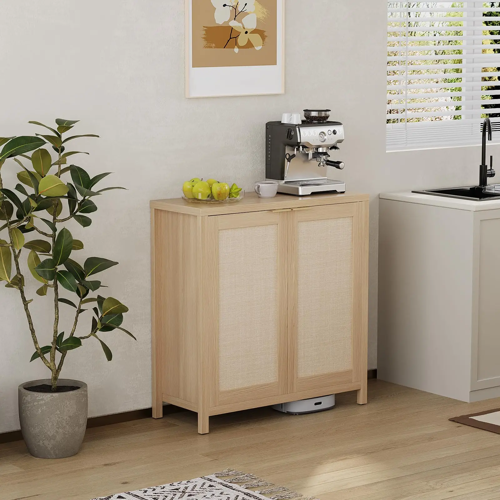 • 1. Large-Capacity Adjustable Storage System As a Freestanding Rattan Storage Cabinet, it features 2 adjustable shelves, a spacious tabletop, and multi-layer storage spaces. It can flexibly store tableware, barware, kitchen supplies, or living room sundries, realizing classified organization and easy access.