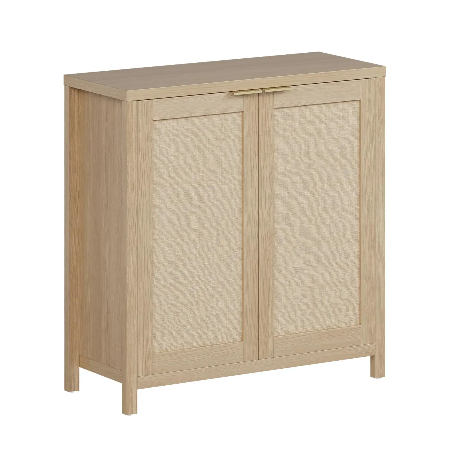 • 3. Natural Material & Exquisite Craftsmanship With a Natural Wood Accent Cabinet and rattan door design, plus hidden golden handles and non-slip wooden legs, it ensures structural stability and durability, while creating a natural and elegant home atmosphere with rattan texture and wood grain.