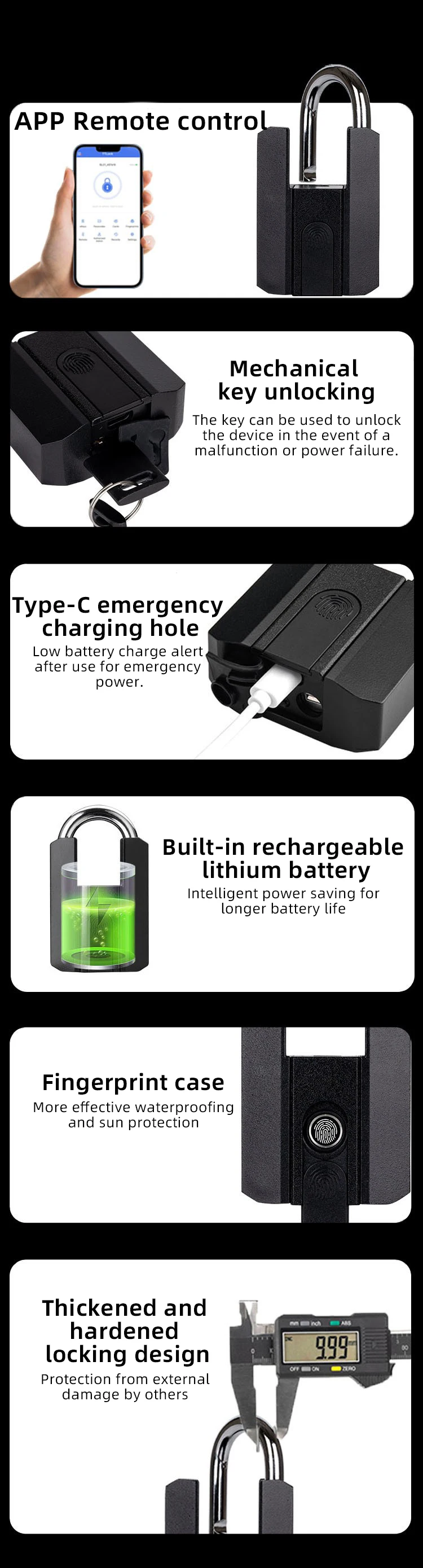 RAYKUBE Waterproof TT Lock BLE Electronic Lock Digital Fingerprint Padlock with Built-in rechargeable Battery APP key Unlock