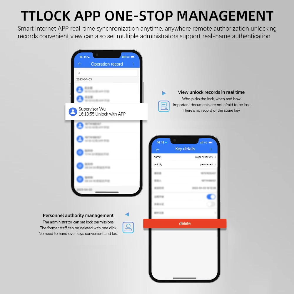Electronic keys can be set for limited time, permanent,single time, and a certain period of time.The permissions of guests and employees can be set separately