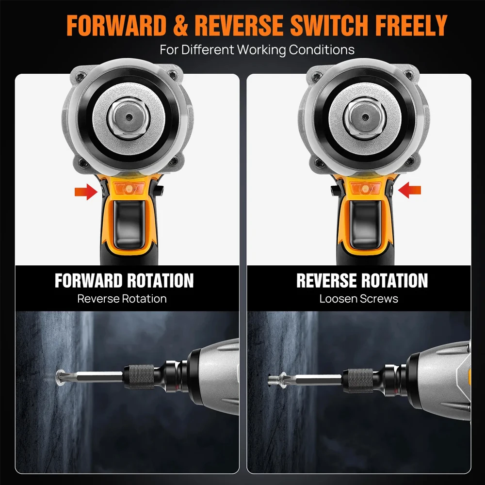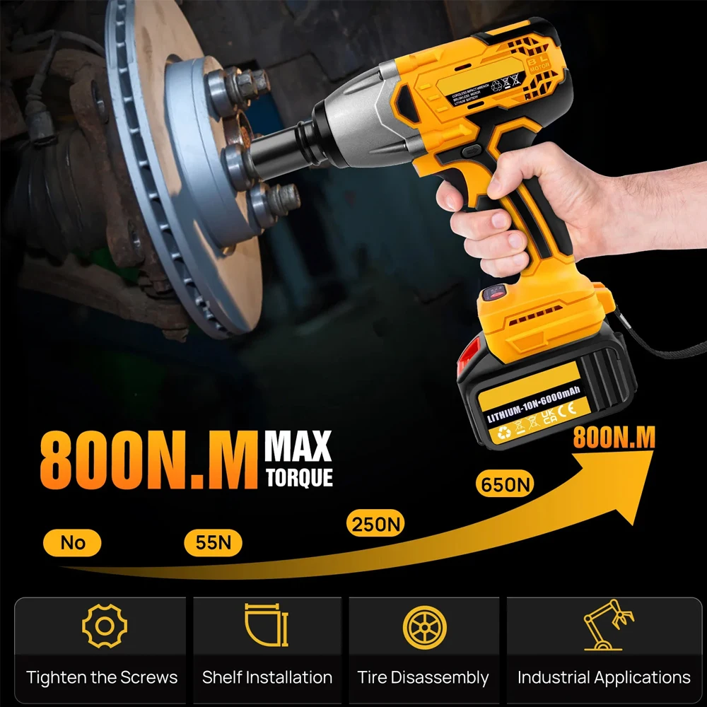 Real 800N.M Torque Brushless Electric Impact Wrench 1/2″, 21V Battery Cordless Wrench for Car Repair, 3 IN 1 Power Tool 3 Speeds