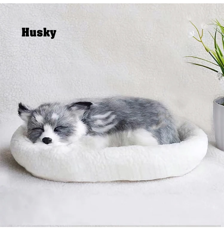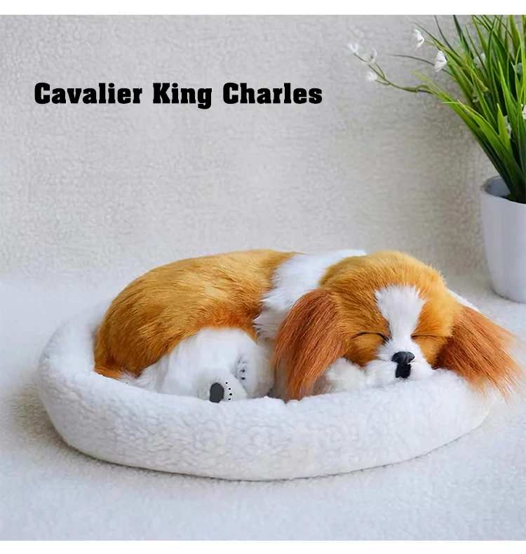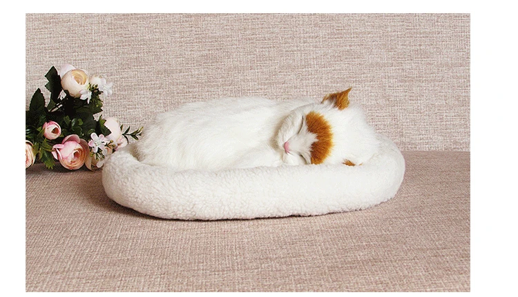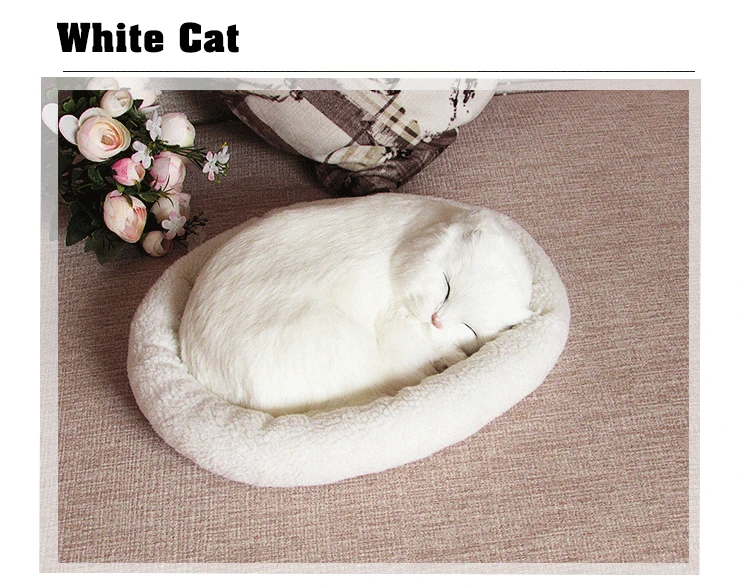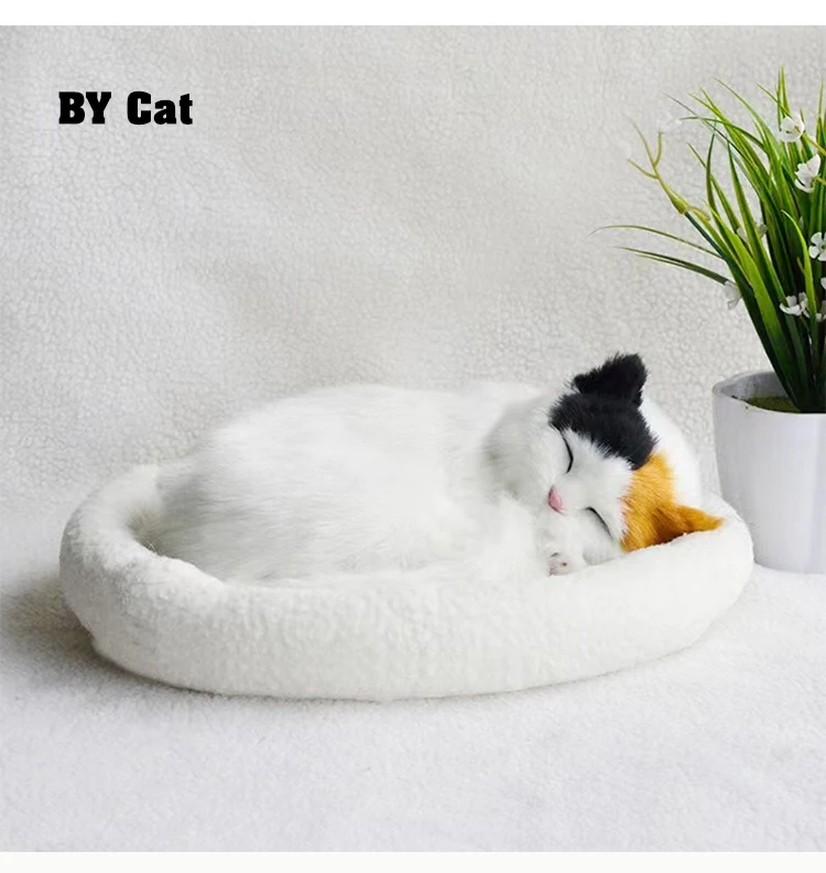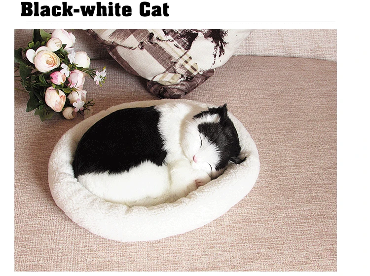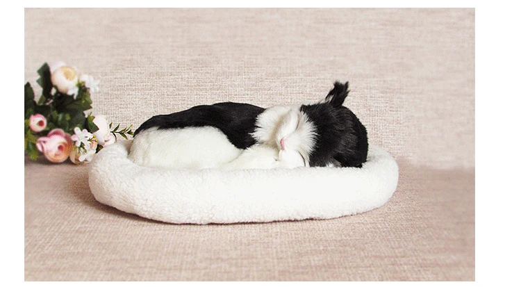 Realistic Black and White Cat Dog Breathing Sleeping Plush Toys Doll Electronic Companion Pets for Dementia Seniors Adults Kids