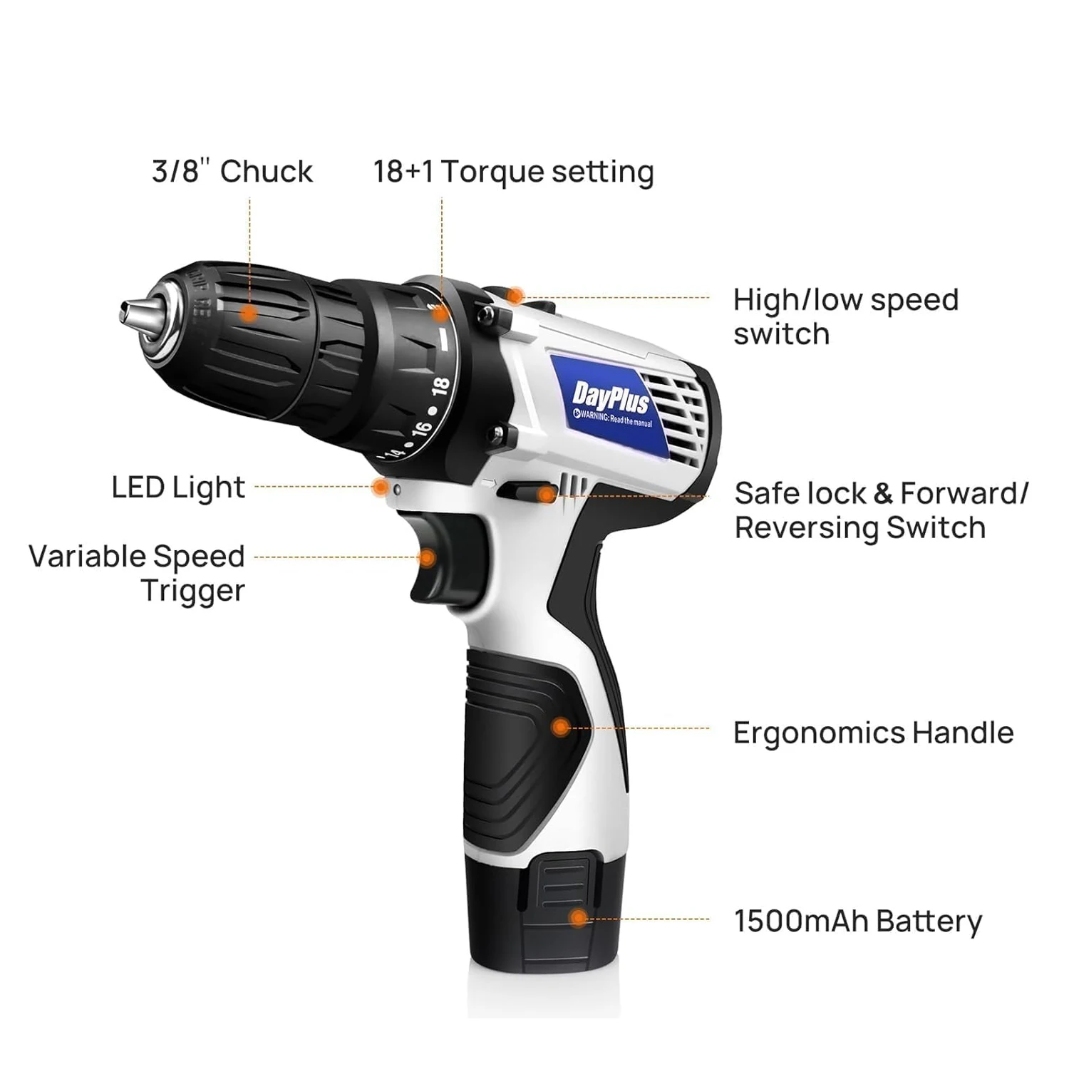 【durable Battery & Charger】 Cordless drill set comes with 1x 1.5Ah battery and fast charger. Which is very easy for outdoor working. It's durable that you have no worries about running out of power in the middle of a project.