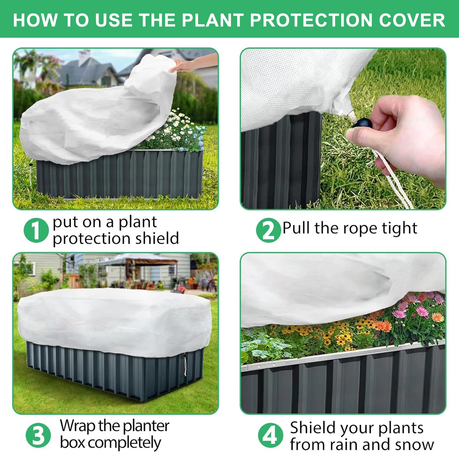 Drawstrings Greenhouse Garden Cover: Easy to secure with adjustable drawstrings, this rectangular garden bed cover offers full protection for winter outdoor plants, combining breathability and strength for optimal plant health in cold climates.