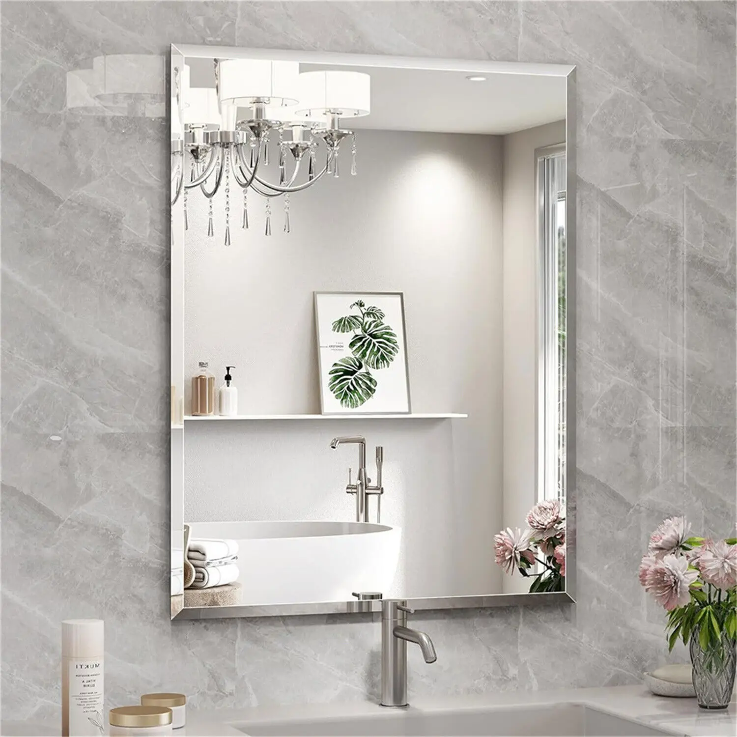 Rectangle Wall Mirror Frameless Vanity Mirror Entry Decor Mirror Beveled Silver Edge for Bathroom Bedroom Livingroom Diningroom