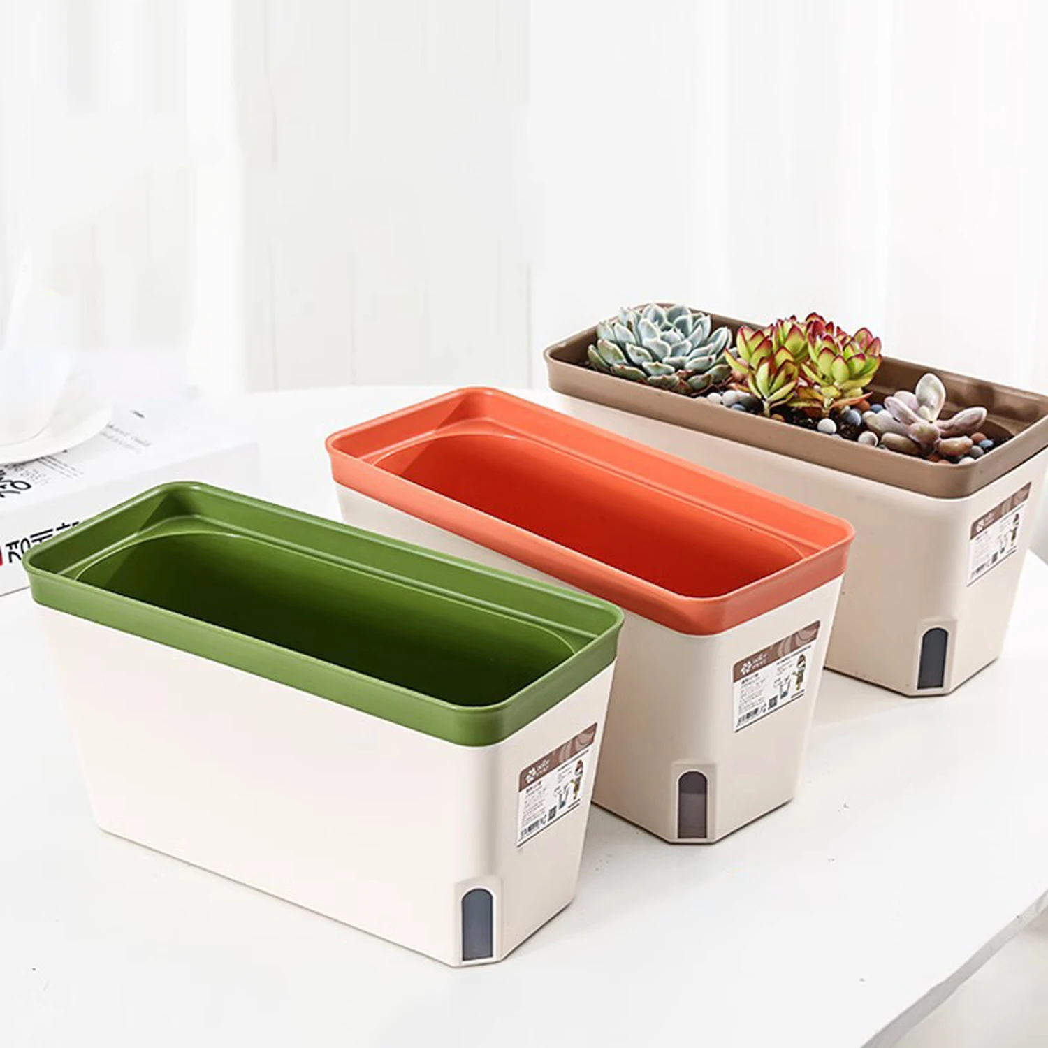 - Features:: Automatic Watering,High Quality Cotton Strips,Visible Window,The planter is sturdy and durable for your long-term use.,Plastic flower pots for planting plants, flowers, herbs, succulents,And place it on the windowsill or balcony to create a beautiful landscape for your space
