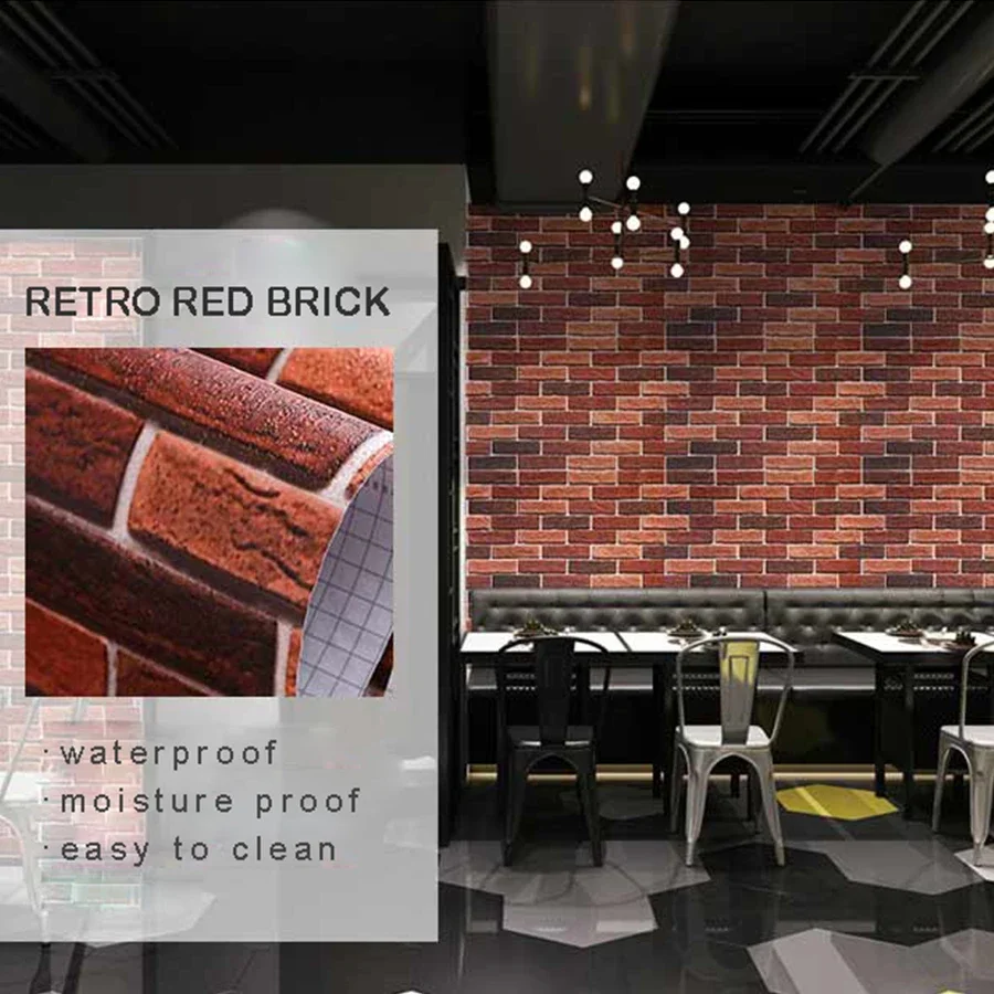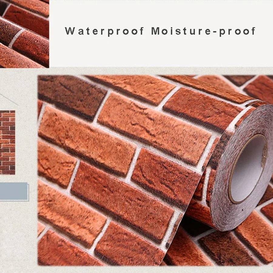 Red Brick Moisture-Proof Waterproof Renovation Sticker PVC Self-Adhesive Room Decoration Bedroom Study Background Wall Wallpaper