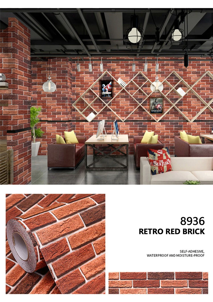 Red Brick Moisture-Proof Waterproof Renovation Sticker PVC Self-Adhesive Room Decoration Bedroom Study Background Wall Wallpaper photo review
