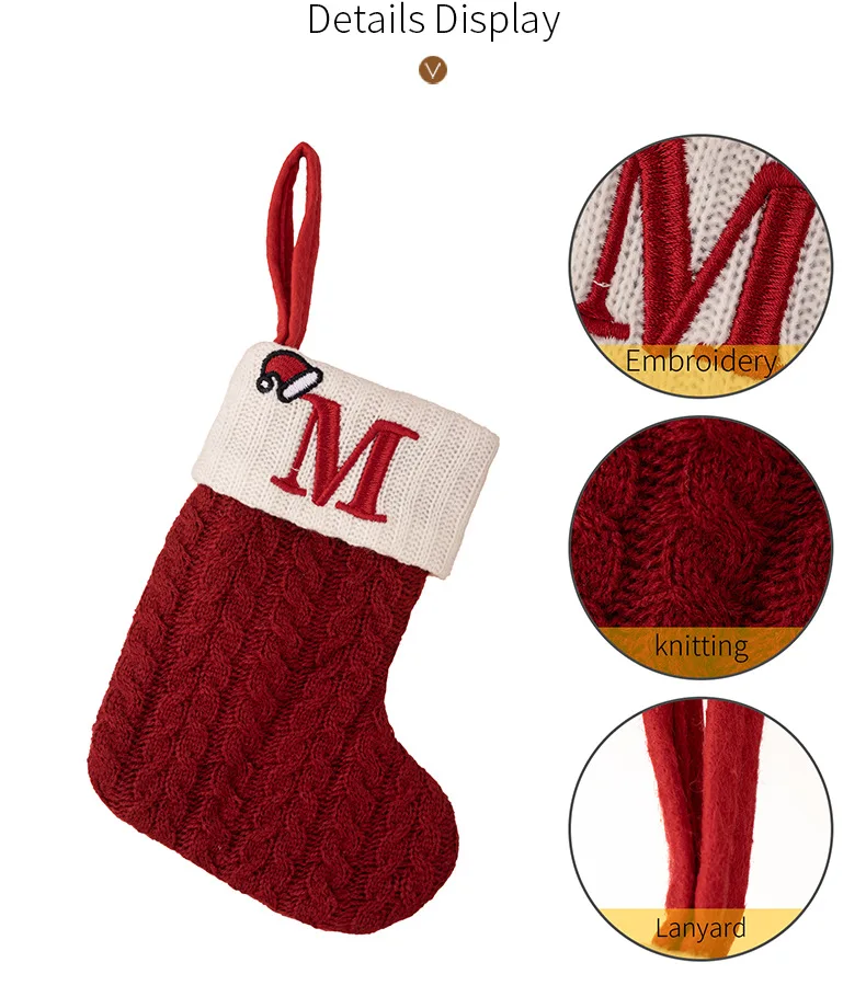 Red Hat Letter Christmas Socks Navidad Natal Xmas Tree Stocking Ornament Gift Knitting Snowflake Christmas Decoration 2024