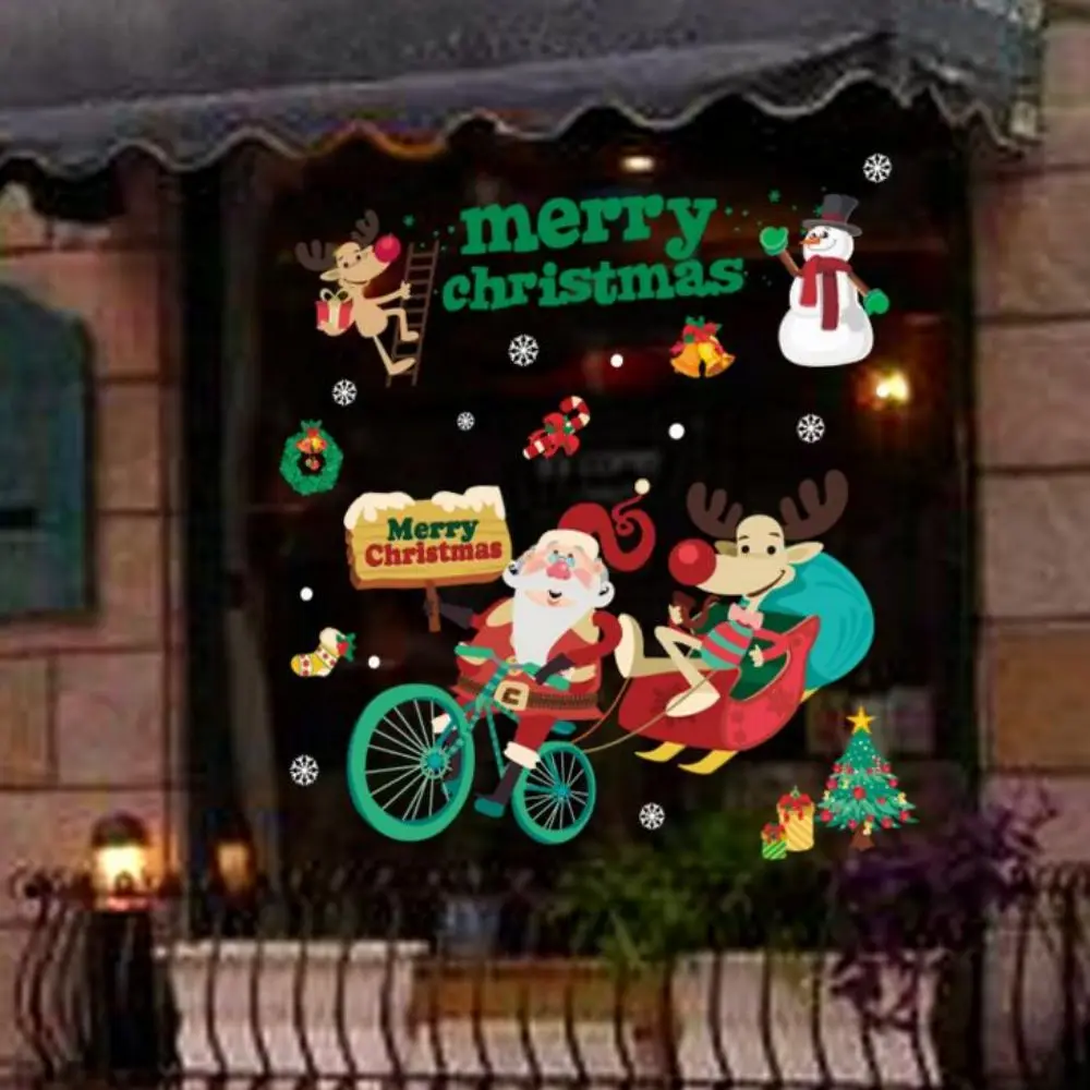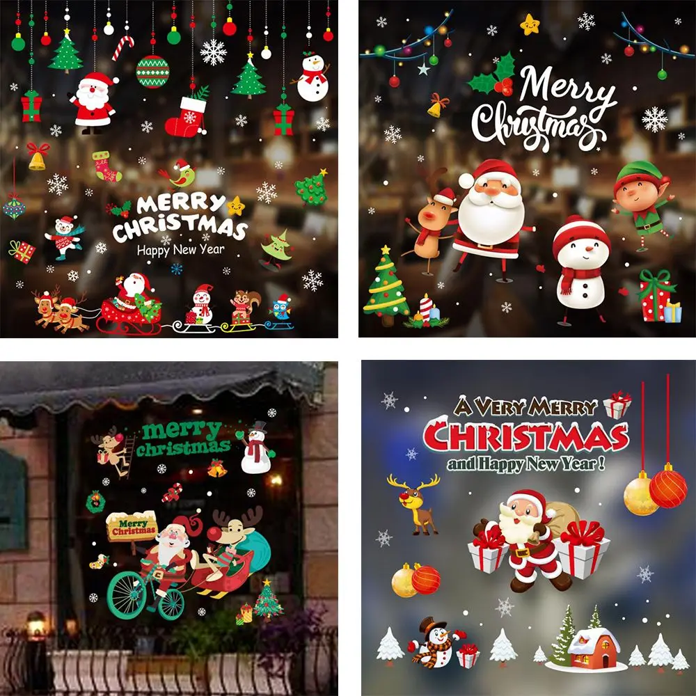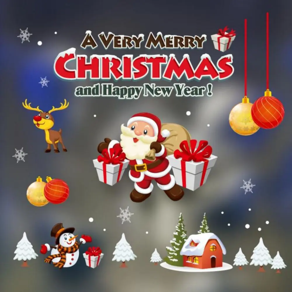 Colorful Christmas Stickers, Santa Claus, Christmas Tree, Merry Christmas Wall Stickers;