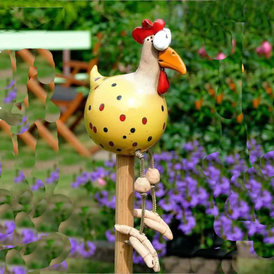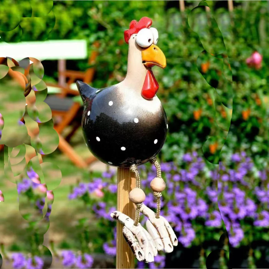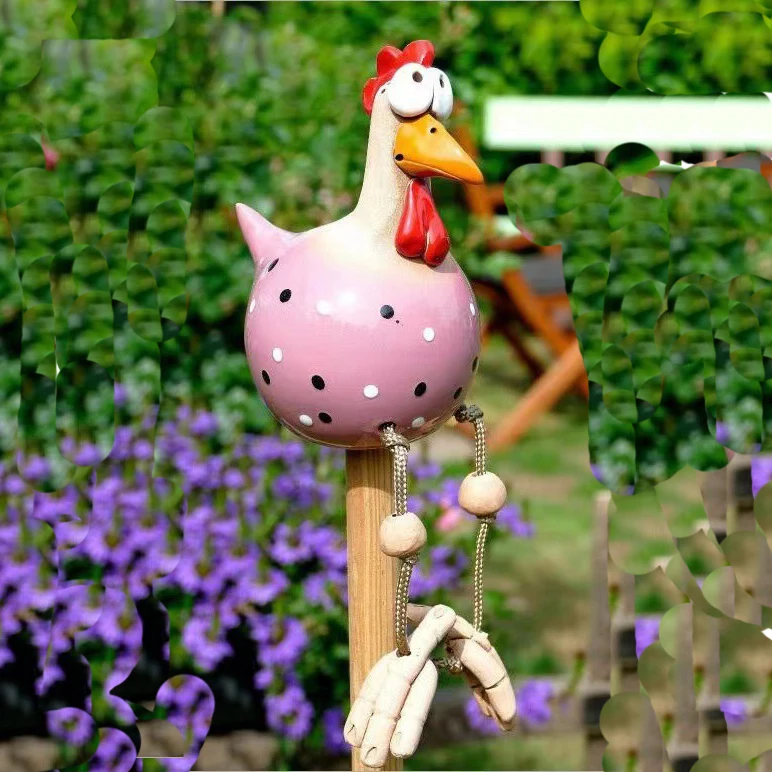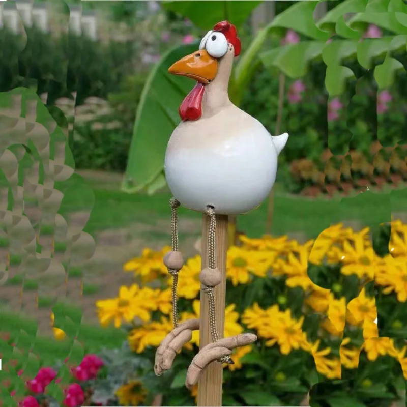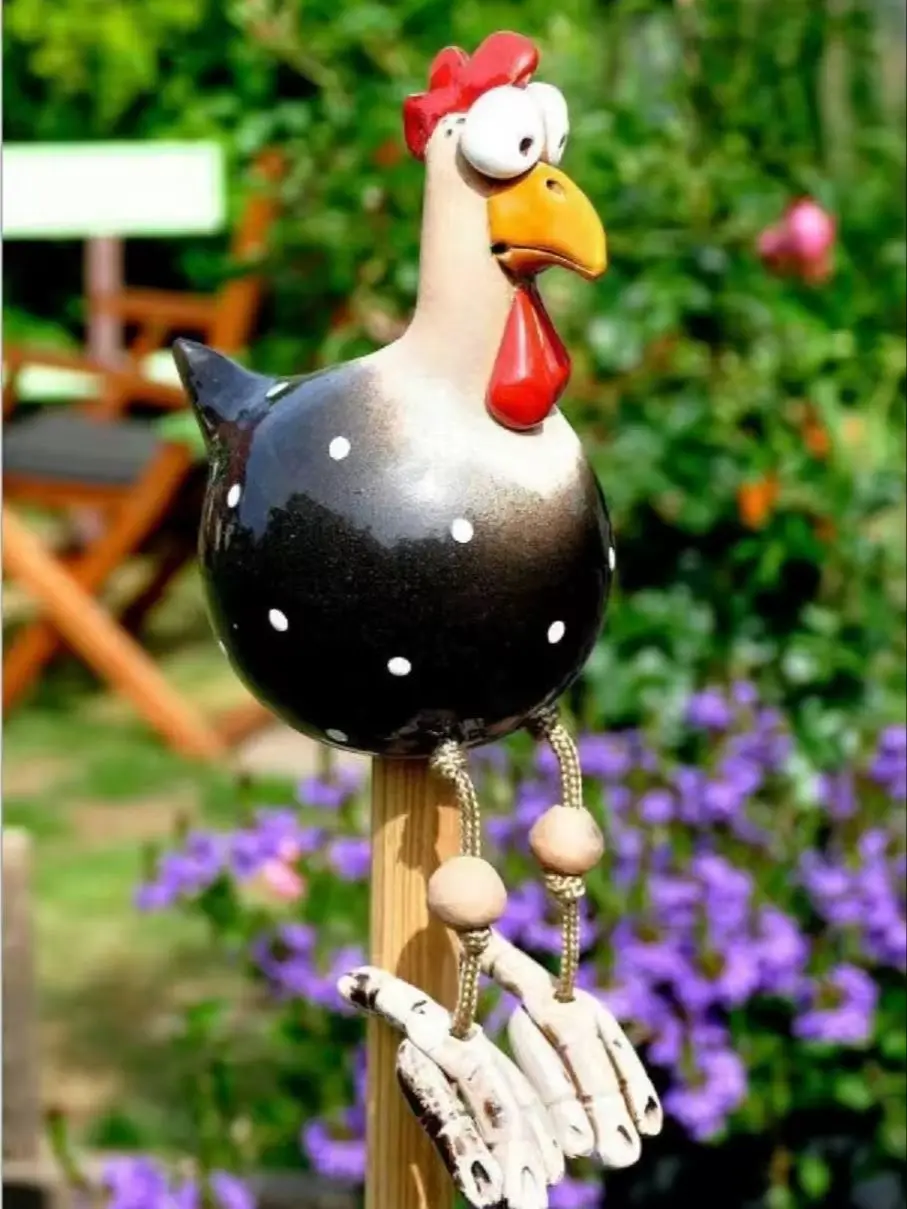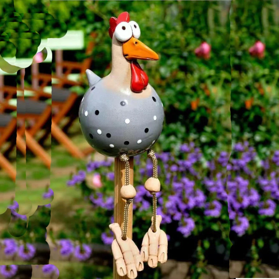 Big-eyed Stilt-legged Rooster Spring-Themed Resin Figurine – Garden Yard Fence Decoration, Ornamental Long-legged Chicken Art Piece