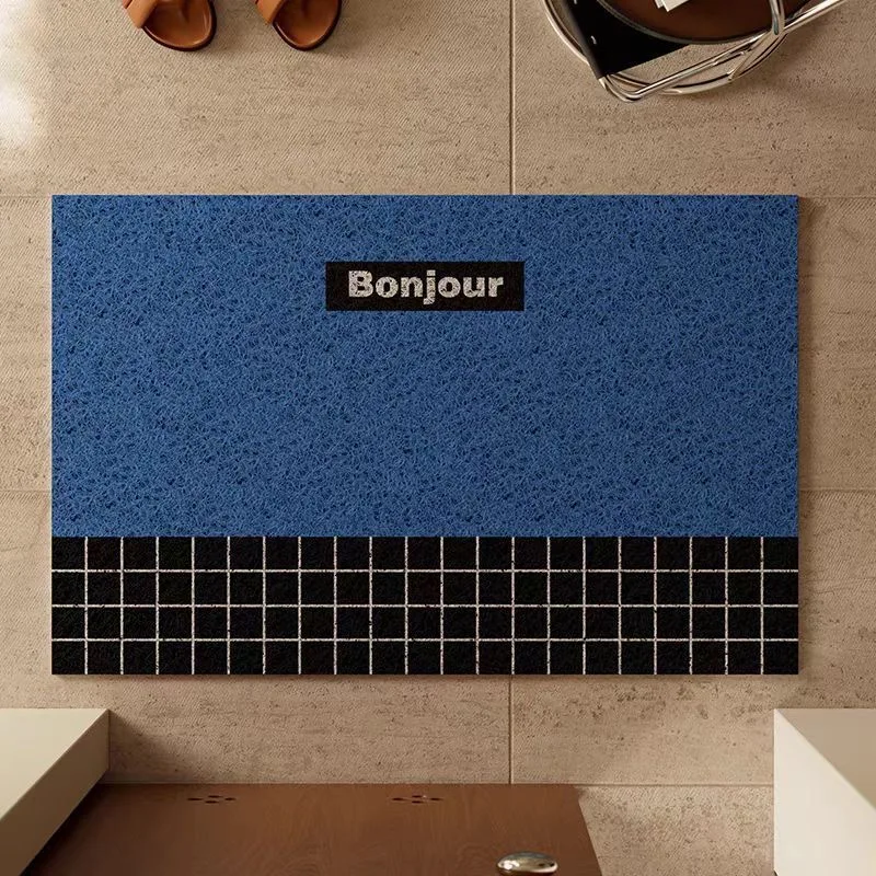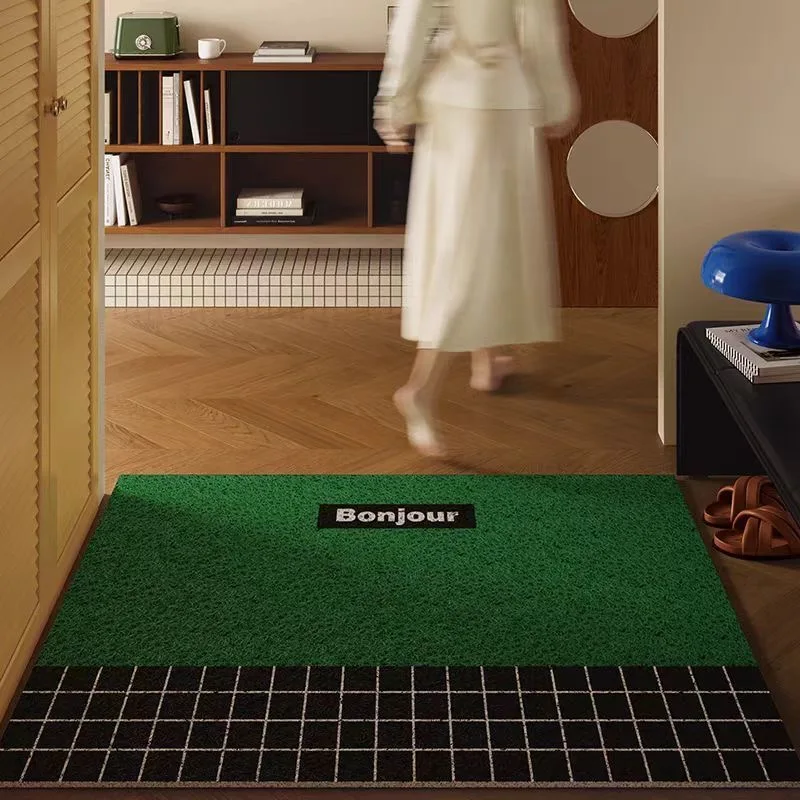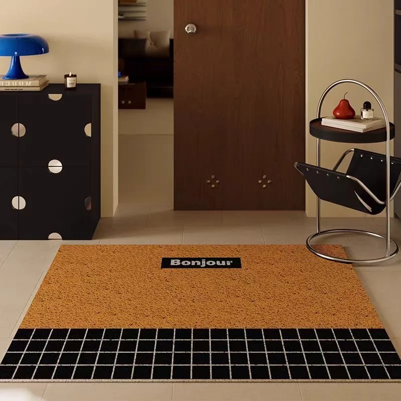Retro geometric entrance door mat, silk ring dust removal foot pad, dirt resistant living room entrance carpet, simple household