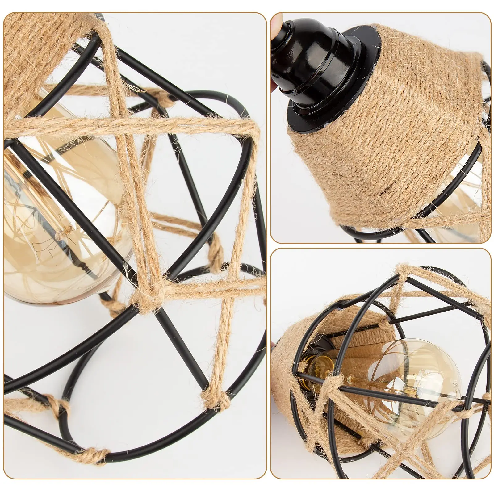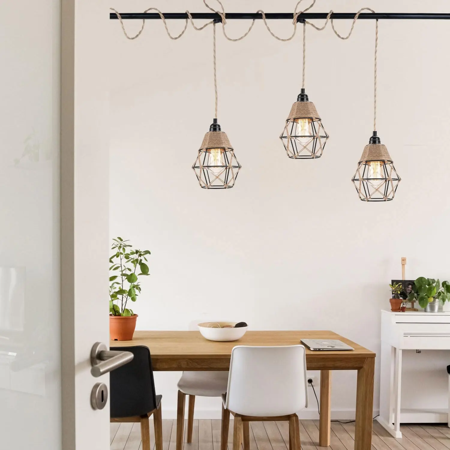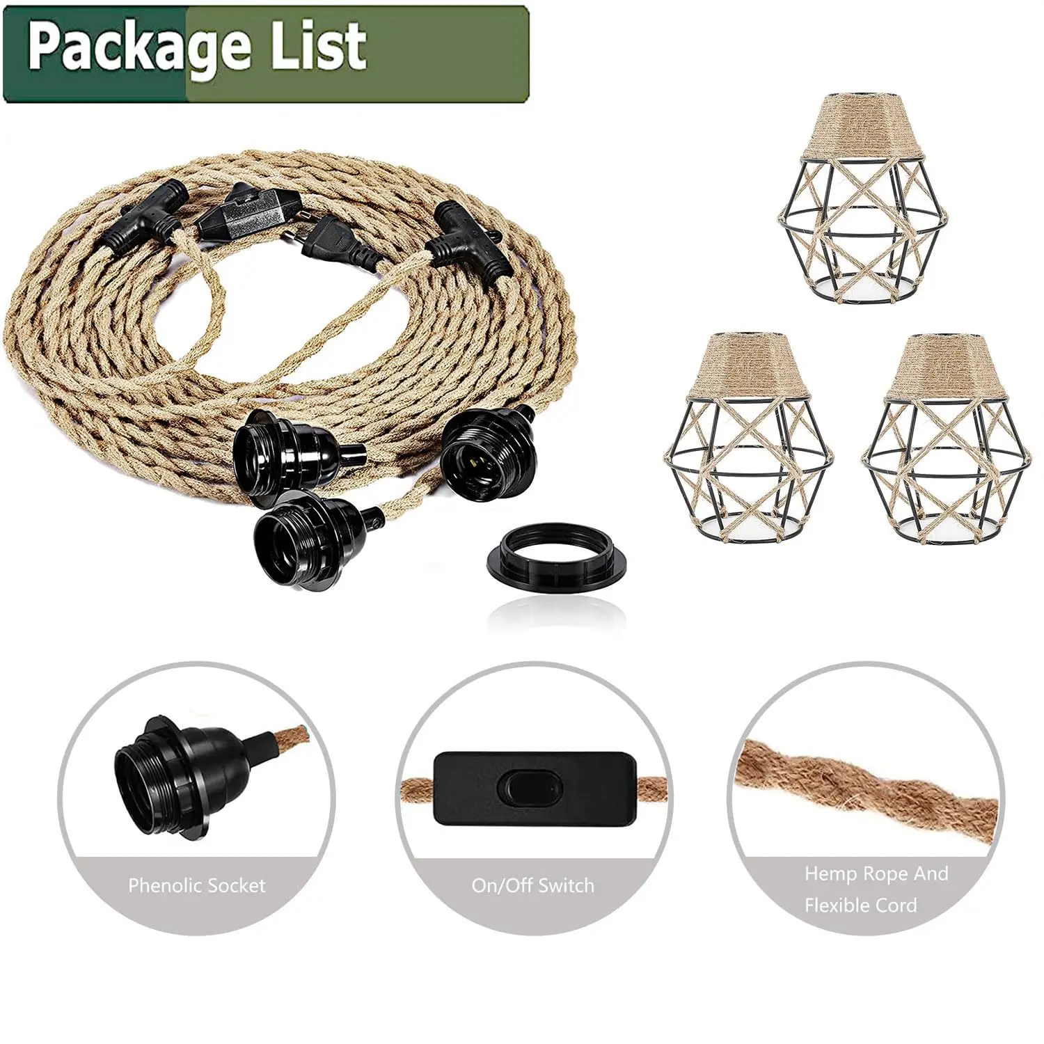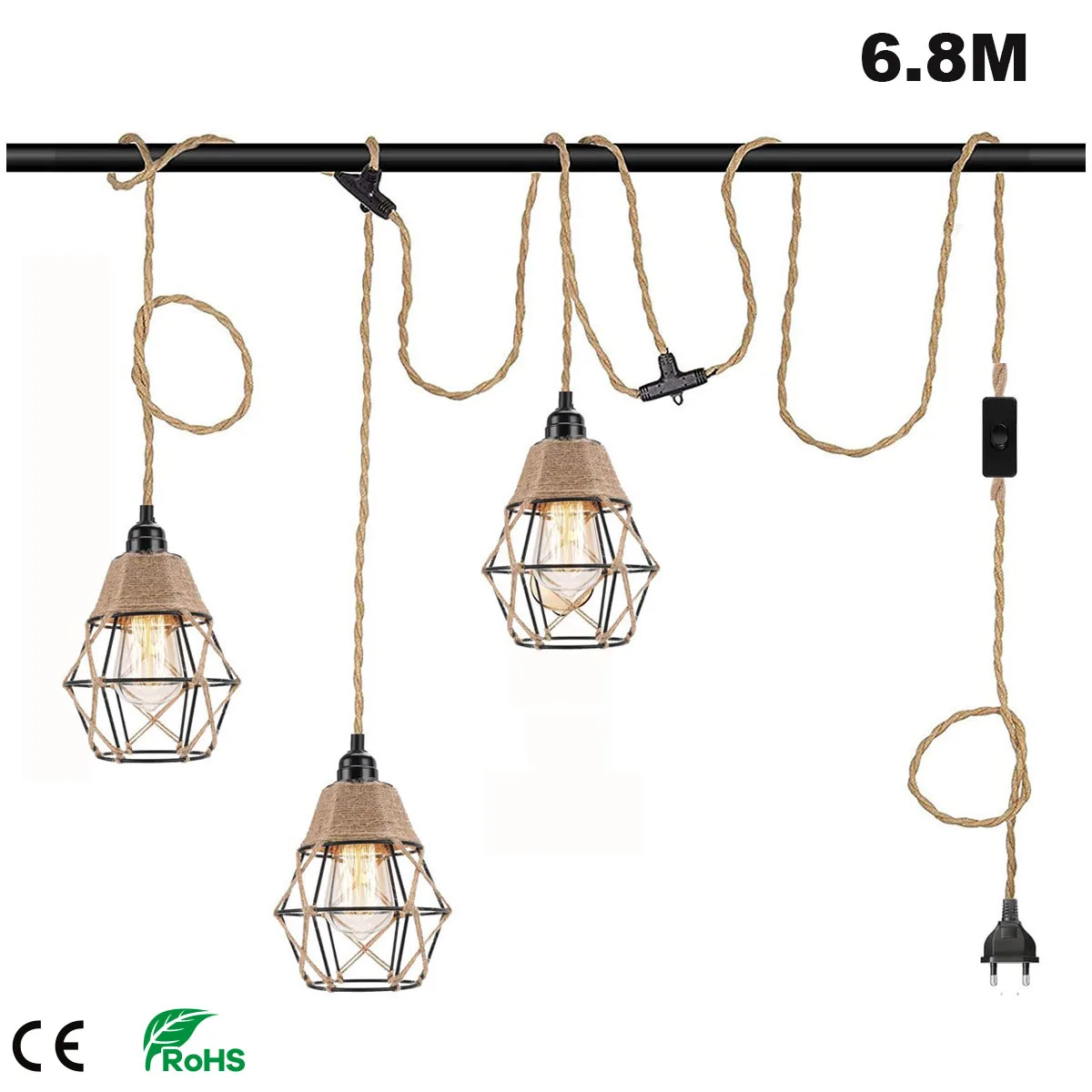 Retro Industrial Plug In Pendant Light With Switch Movable Hemp Rope Kitchen Island Hanging Lamps For Ceiling Interior Fixture