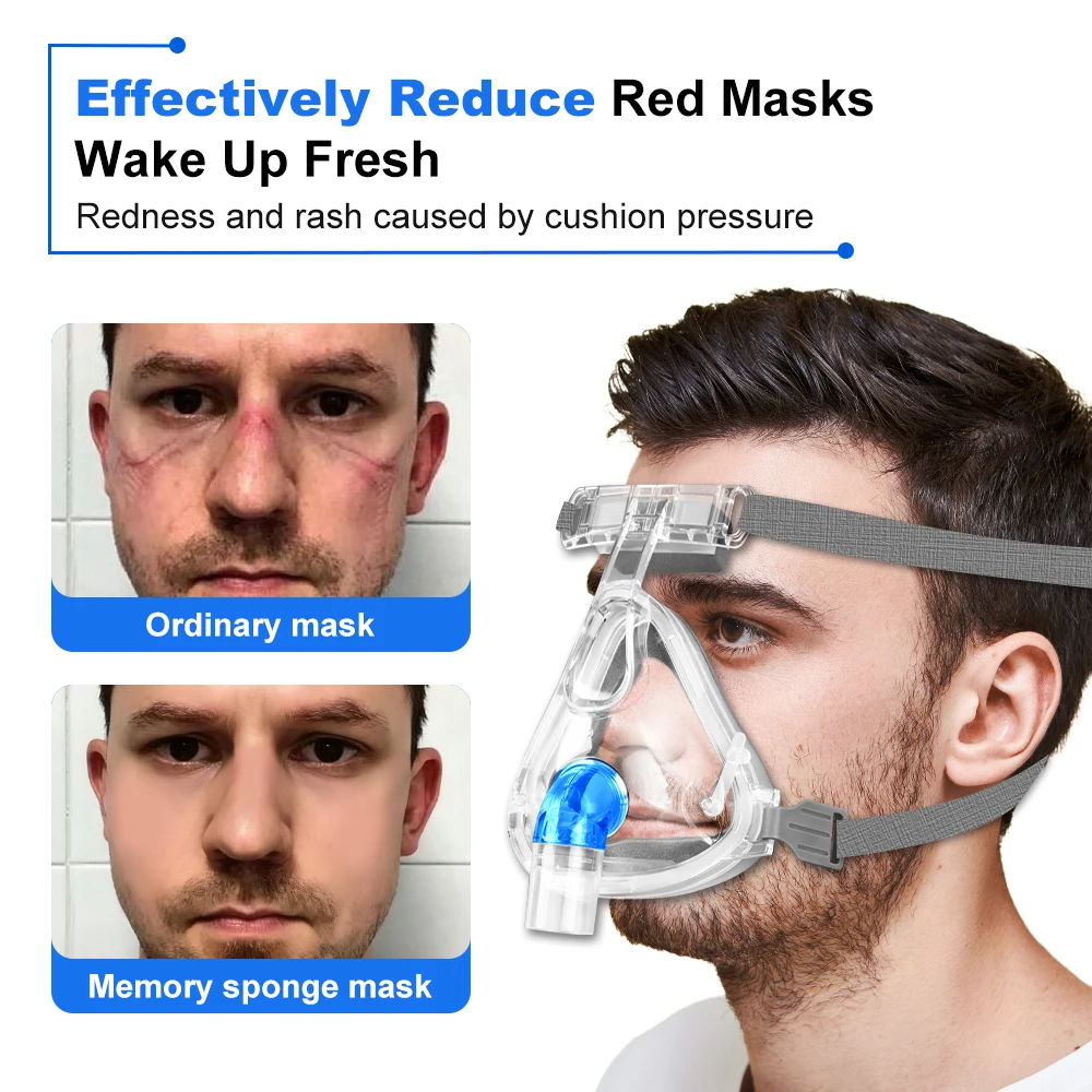 Reusable Full Face CPAP Mask Auto CPAP BiPAP Accessories With Headgear Headband Use for Sleep Apnea and Snoring Stopper Solution