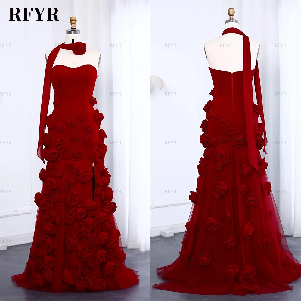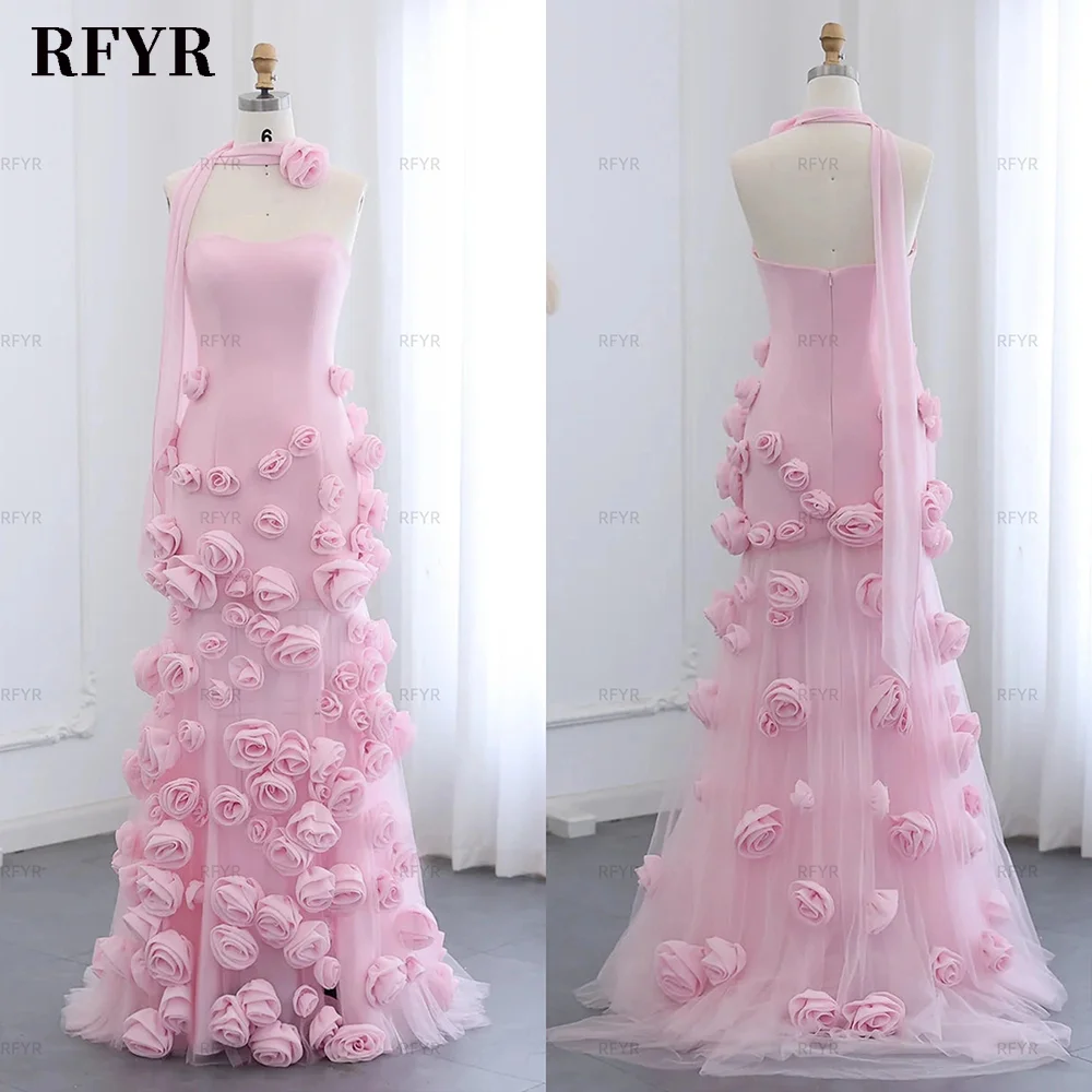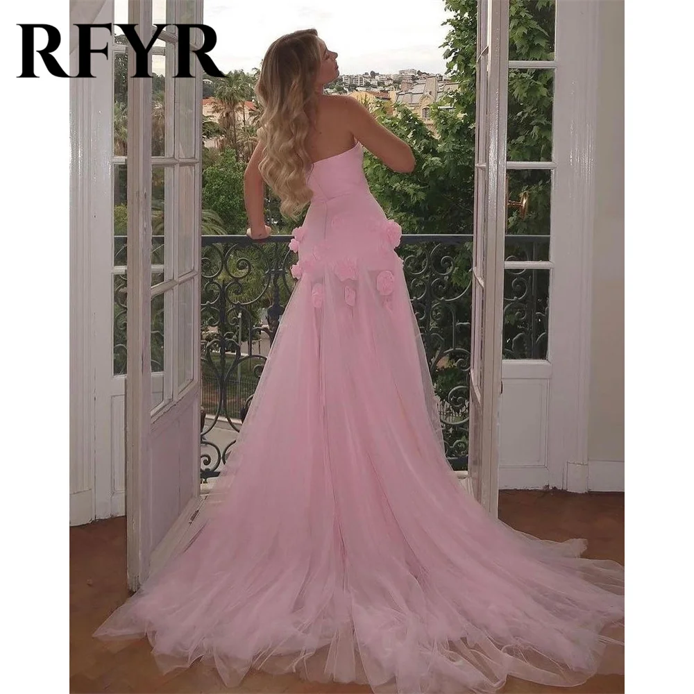 RFYR Pink Mermaid Charming Prom Dress 3D Flower Formal Gown Sleevesless Evening Gown with Side Slit vestidos de noche Customized